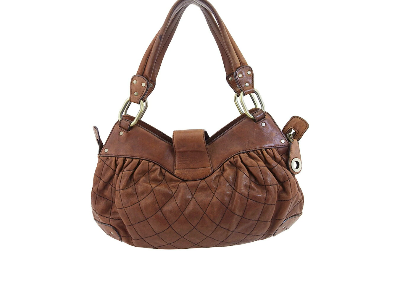 | コンディション | 全体の状態詳細:大きなダメージもなく、まだまだ十分ご使用いただけます。 外側:レザー(傷、汚れ、黒ずみ、角スレ)、装飾金属(傷)、持ち手(黒ずみ、黒いシミ2箇所、ヨレ、ヒビ割れ)あり。 内側:ファスナー部分のレザー(傷、汚れ、黒ずみ)、裏地(黄ばみ汚れ)、金具類(傷)あり。 その他、中古品のため 目立たない傷 汚れ などの一般的使用感があります。 |