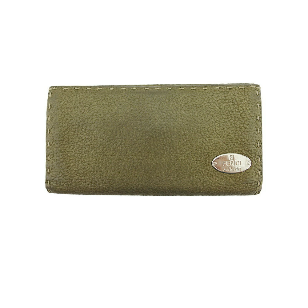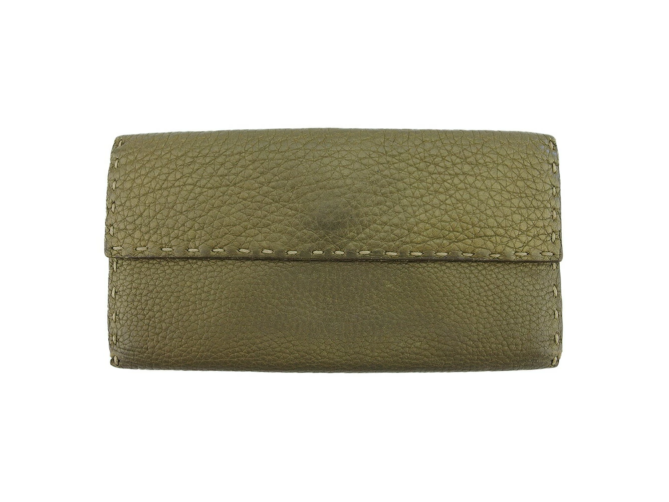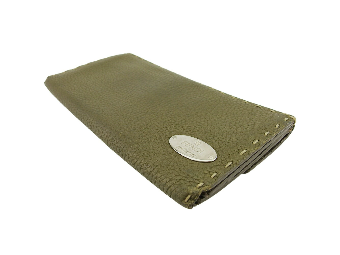 [Rakuten Fashion THE SALE ★ Up to 50% Off] Fendi Selleria Long Wallet with Logo Plate in Khaki, Bronze, and Silver. Women's. Pre-owned. FENDI. High-end vintage brand.