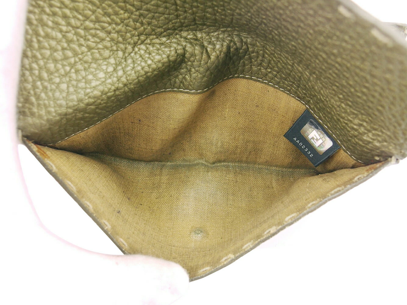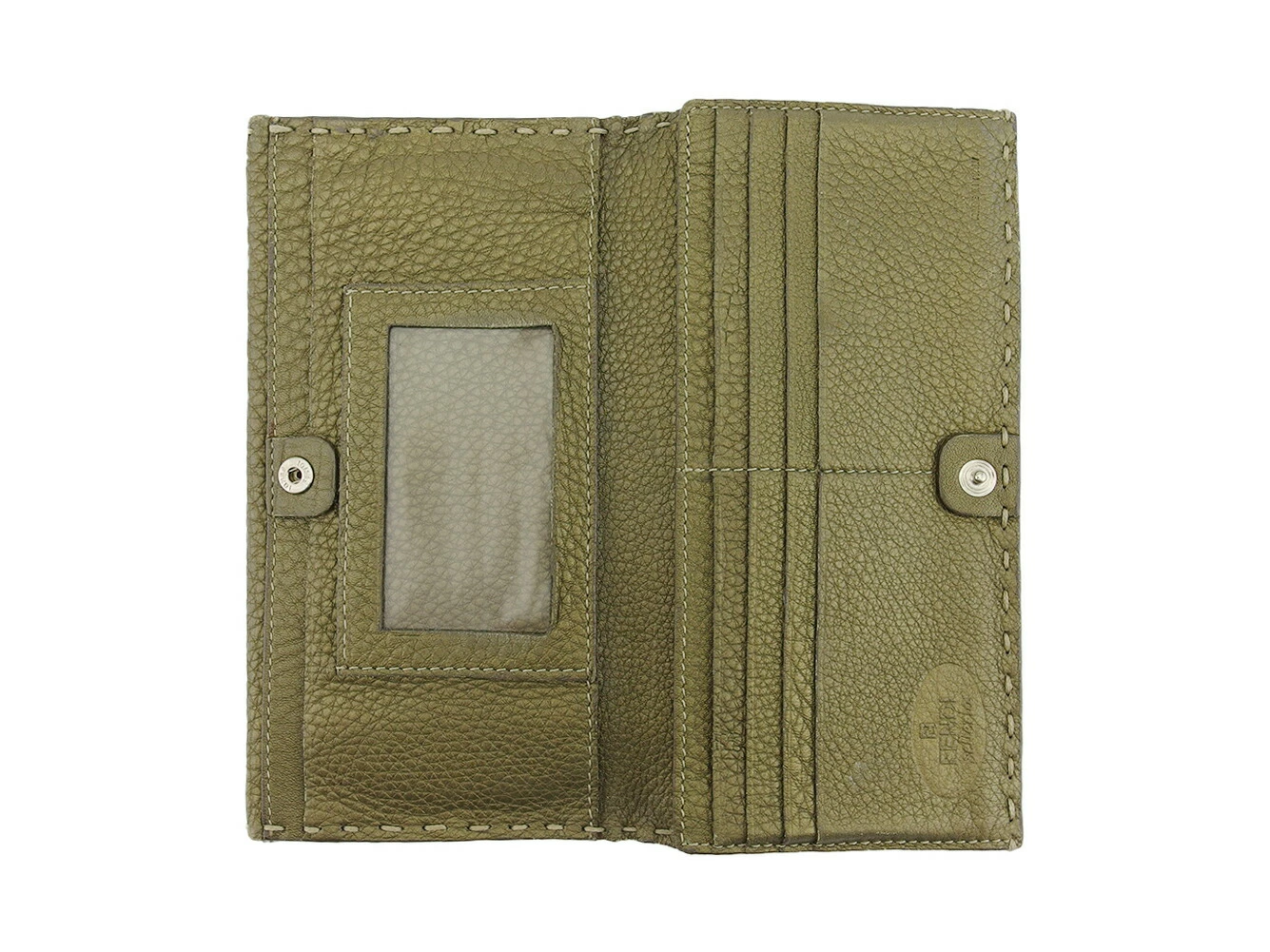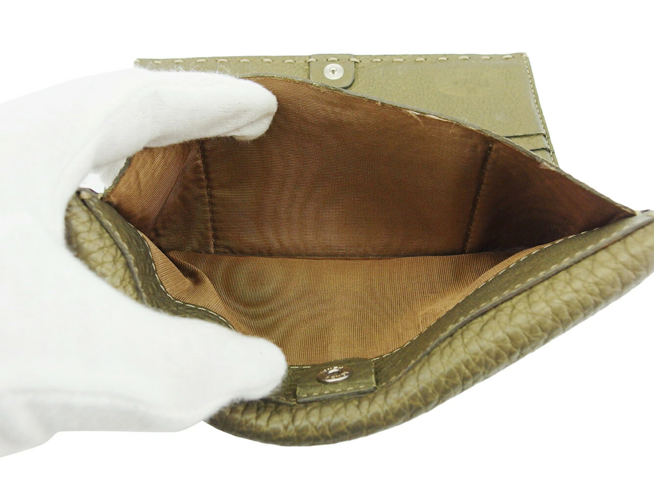 [Rakuten Fashion THE SALE ★ Up to 50% Off] Fendi Selleria Long Wallet with Logo Plate in Khaki, Bronze, and Silver. Women's. Pre-owned. FENDI. High-end vintage brand.