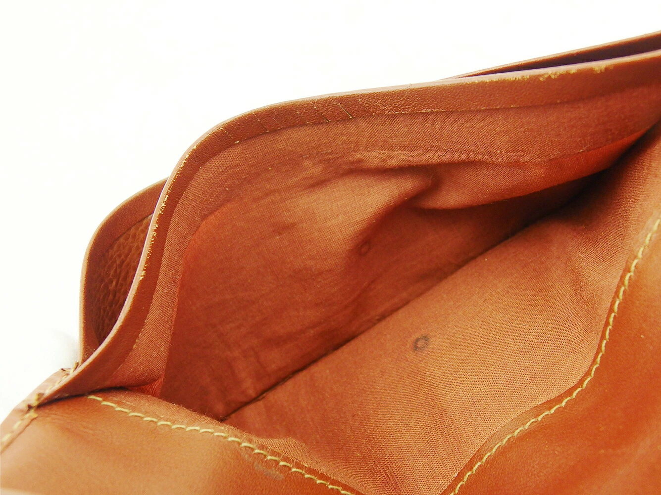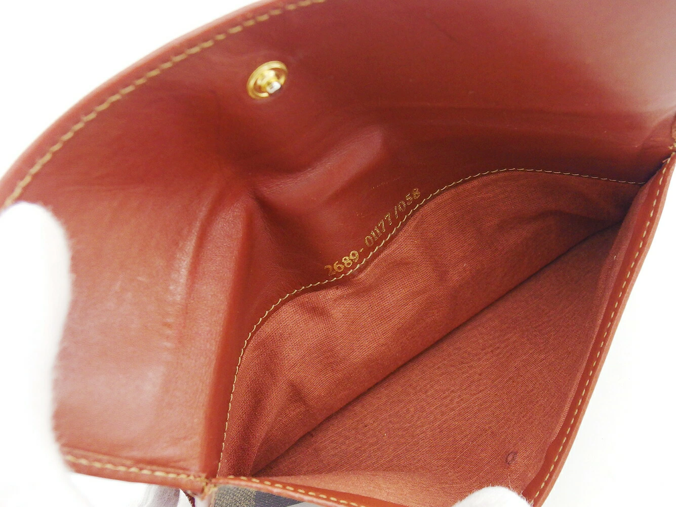 | コンディション | 全体の状態詳細:大きなダメージもなく、まだまだ十分ご使用いただけます。 社外リペア跡(パイピングの一部部分の着色&補強)あり。 外側:パイピング(若干の劣化、着色&補強)、レザー(傷)あり。 内側:札入れ裏地(ボタン跡)、レザー(シワ、傷)あり。 この他、中古品のため 目立たない傷・汚れ などの一般的使用感があります。 |