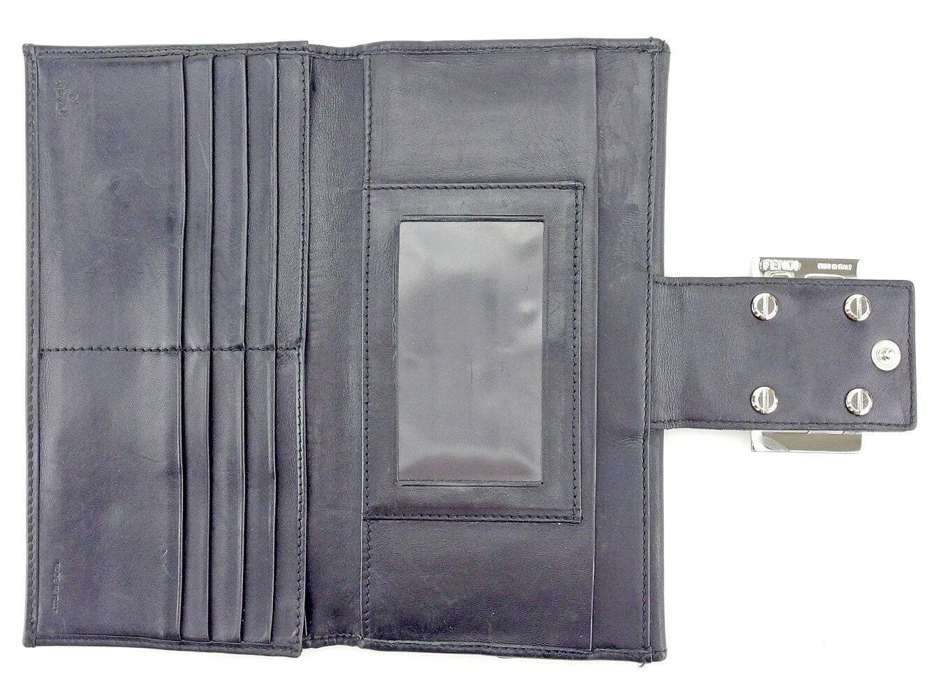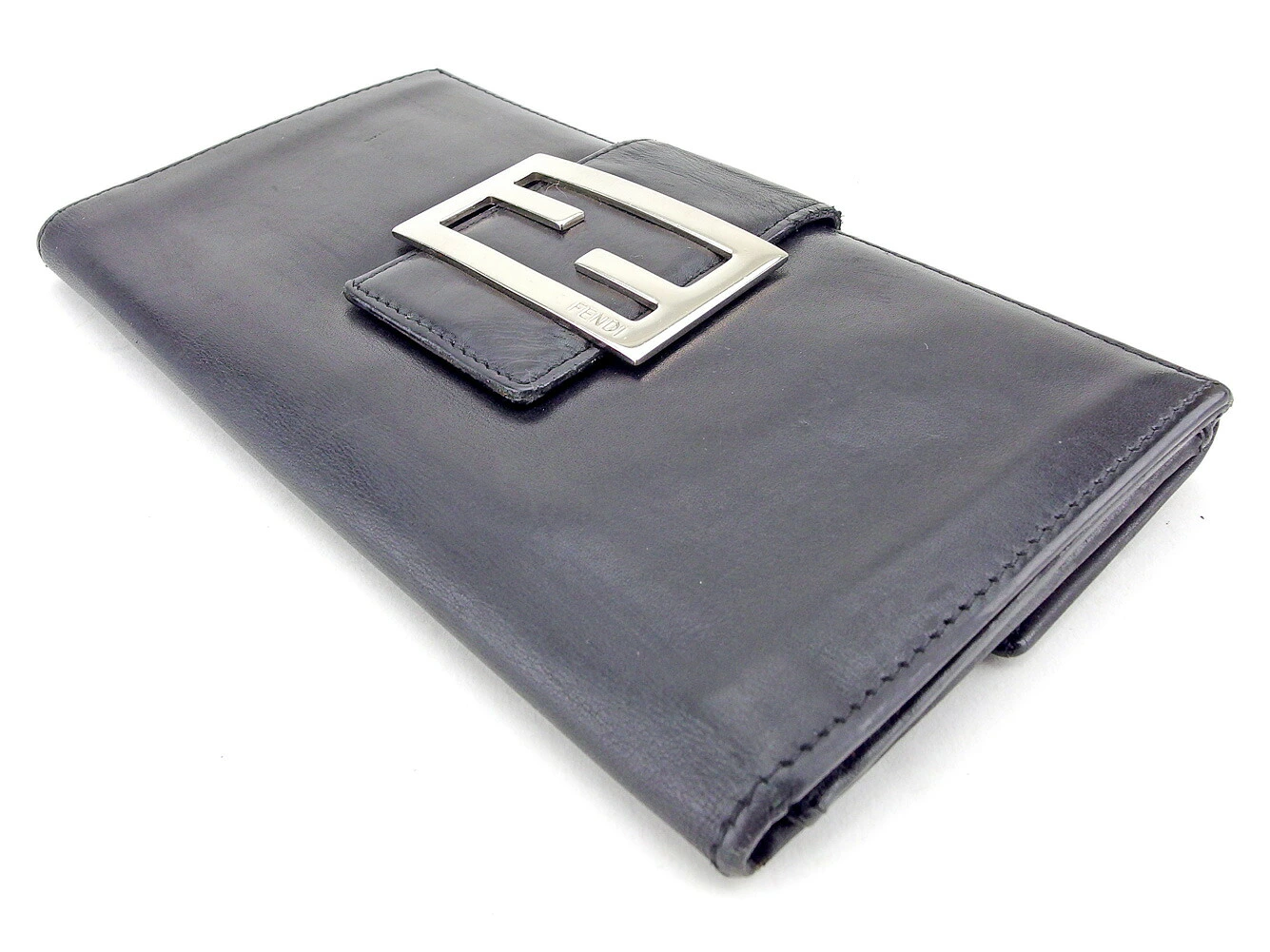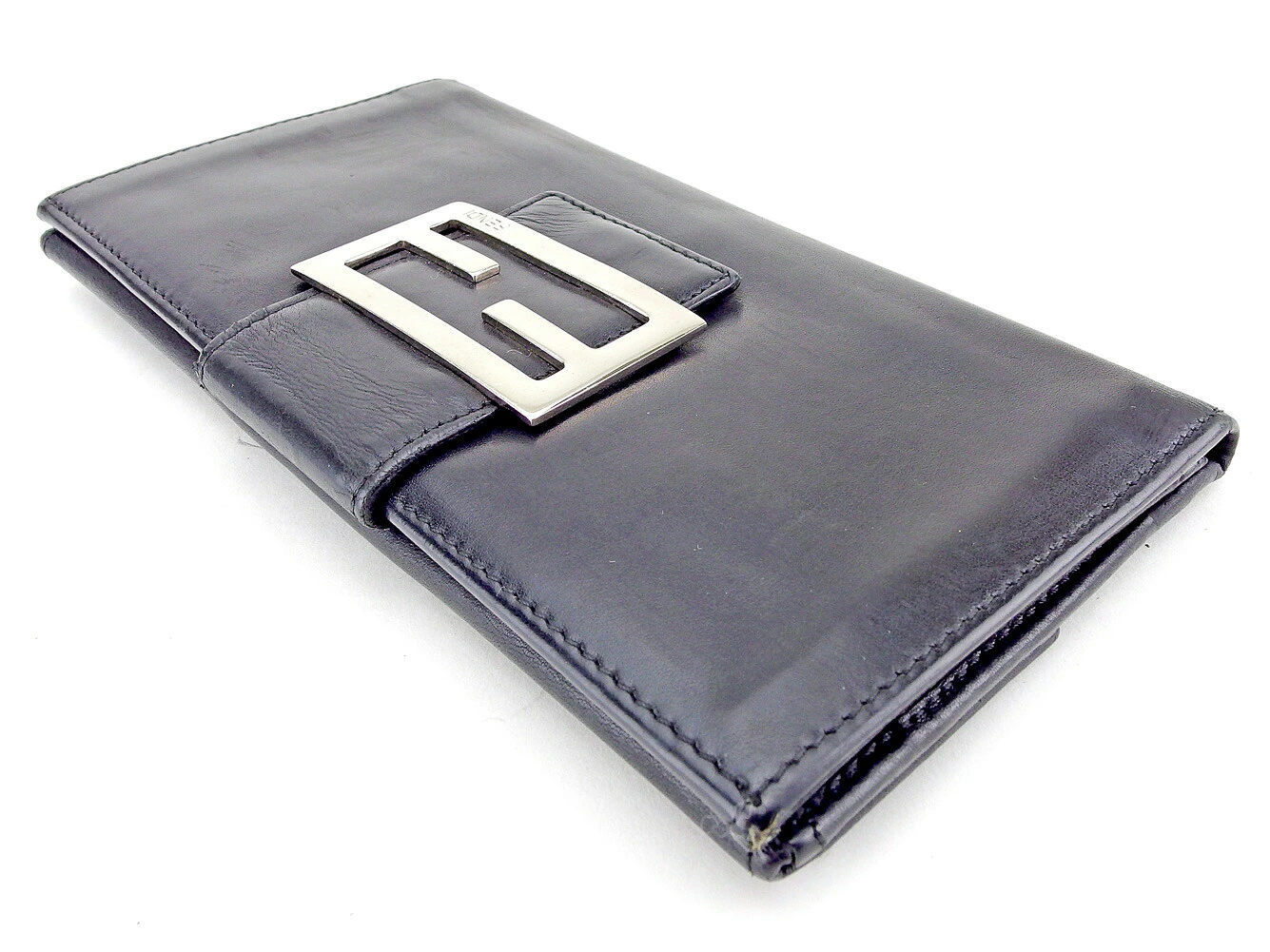 [Rakuten Fashion THE SALE ★ Up to 50% Off] Fendi Long Wallet with FF Plate, Black and Silver, Men's, Pre-owned, High-End Brand, Vintage