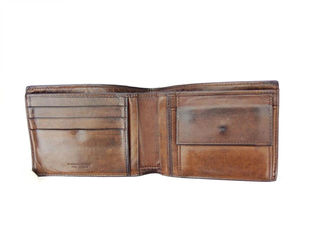 [Rakuten Fashion THE SALE ★ Up to 50% OFF] Bottega Veneta Intrecciato Brown Bi-fold Wallet for Men, Pre-owned, High-End Vintage