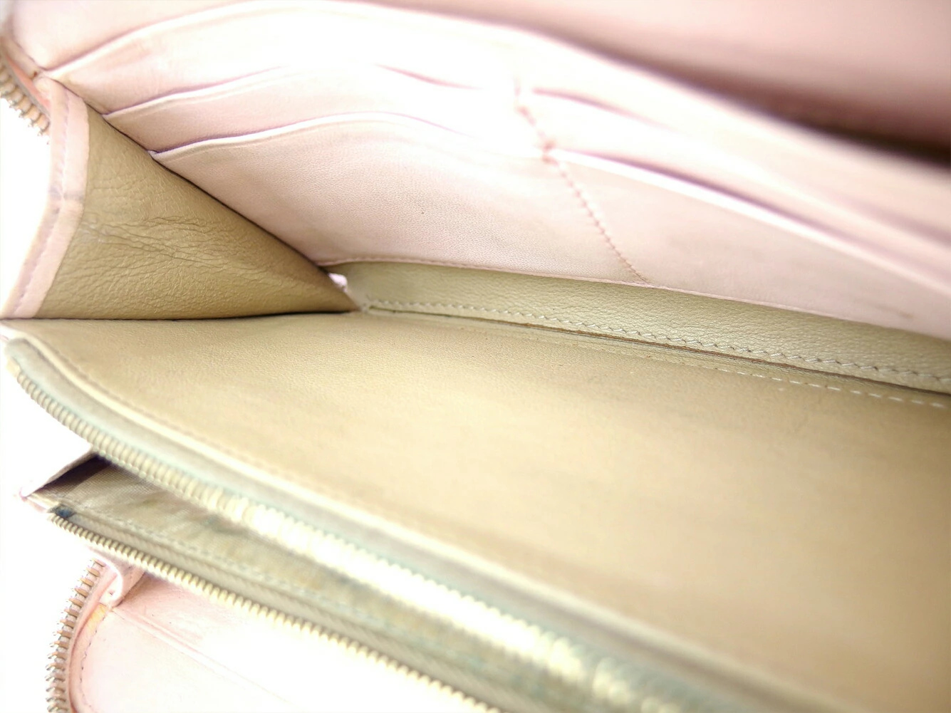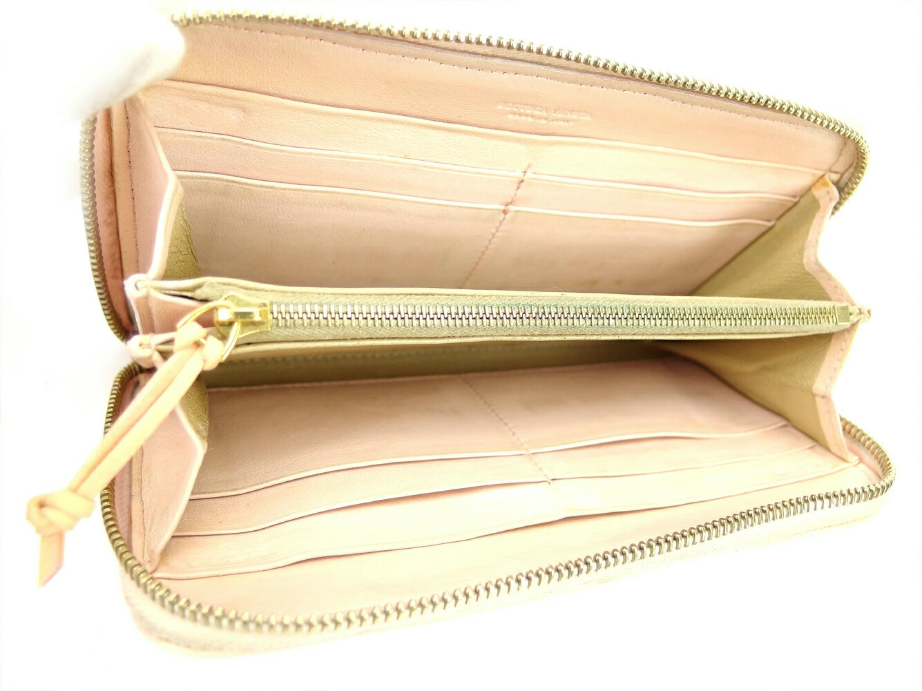 | コンディション | 全体の状態詳細:まだまだお使いいただけます。 社外リペア跡(スレ色着色、内社外ファスナープル取り付け)あり。その他 スレ&汚れ(内側&札入れ&小銭入れ&ポケットもあり) 黒ずみ(小銭入れ) 金具ハゲ 角破れ跡(4ヶ所程) シミ(小銭入れ&カード入れ&ポケット) 湿り気小(カード入れ) など使用感があります。 |