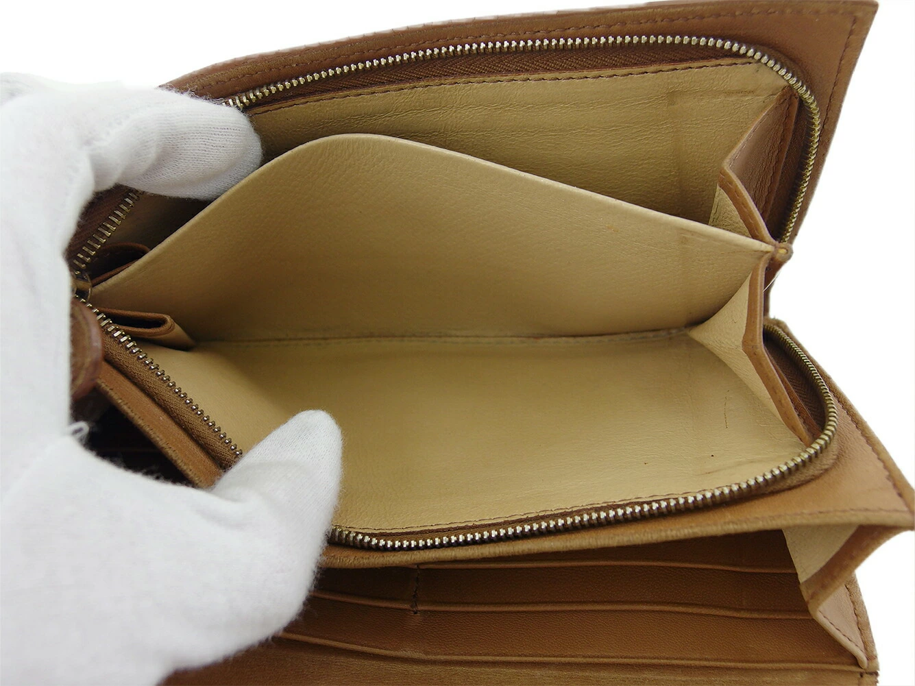 | コンディション | 全体の状態詳細:まだまだお使いいただけます。 スレ&汚れ(内側&札入れ&小銭入れ&カード入れ&ポケットもあり) 傷(内側もあり) 角スレ ペン跡(背面一部) 金具ハゲ コバヒビ割れ(角付近&ファスナープル革) キレ(ファスナープル革付け根) などの使用感があります。 |