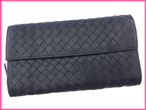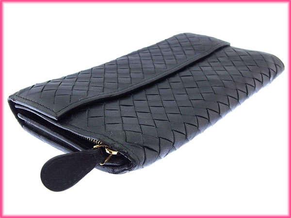 [Rakuten Fashion THE SALE ★ Up to 50% Off] Bottega Veneta Long Wallet, Intrecciato Black and Gold, Women's, Pre-owned, High-End, Vintage