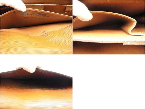 | コンディション | 全体の状態詳細:まだまだ十分にお使いいただけます。 ホック部分に破損あり、閉じない場合があります。(補修跡あり) ポケット内側に素材ハガレ ベタ あり。その他、スレ 傷 汚れ シワ 金具ハゲ カラーハガ 取っ手に黒ずみ コバにひび割れ 社外着色リペア跡などの一般的使用感があります。 |