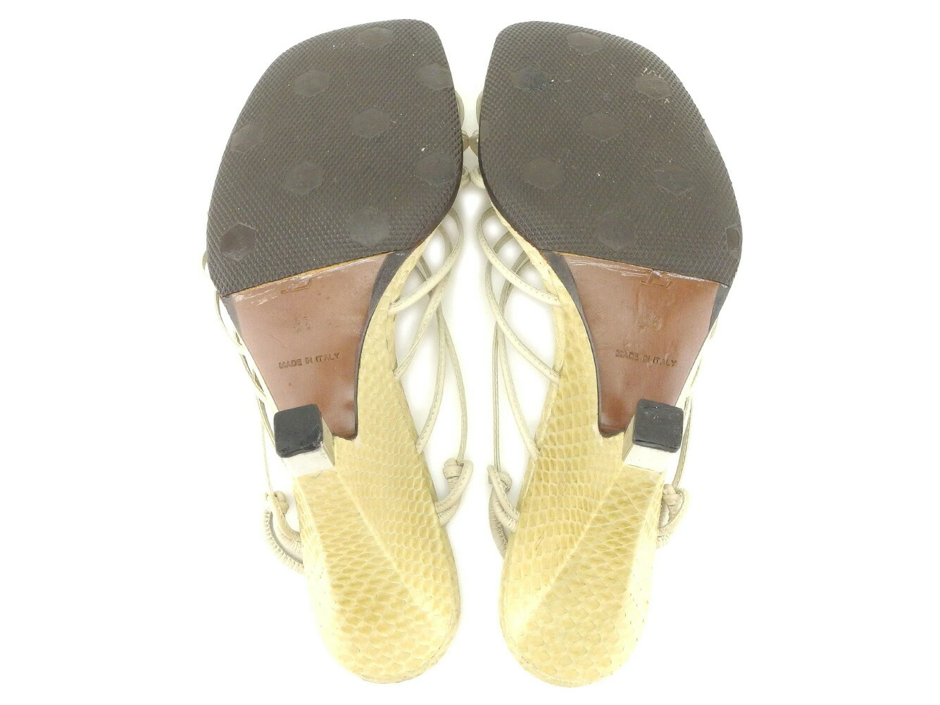 | 備考 | 表記サイズ:36 ソール幅:約7.5cm ソール全長:約22.5cm ヒール:約9cm (参考日本サイズ:約22.5cm) ※参考日本サイズはあくまで目安です。メーカーによって、または足の形、幅などによってサイズは微妙に違ってきます。あくまで参考程度にご覧下さい。 |