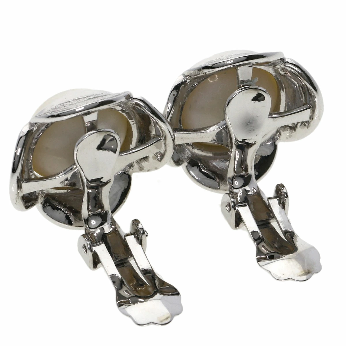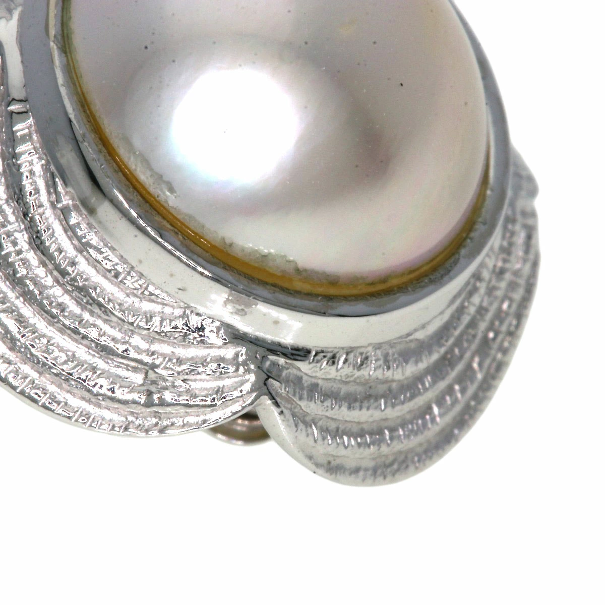 Mikimoto Flower Motif Mabe Pearl Earrings in 14K White Gold for Women [Pre-owned] [MIKIMOTO]