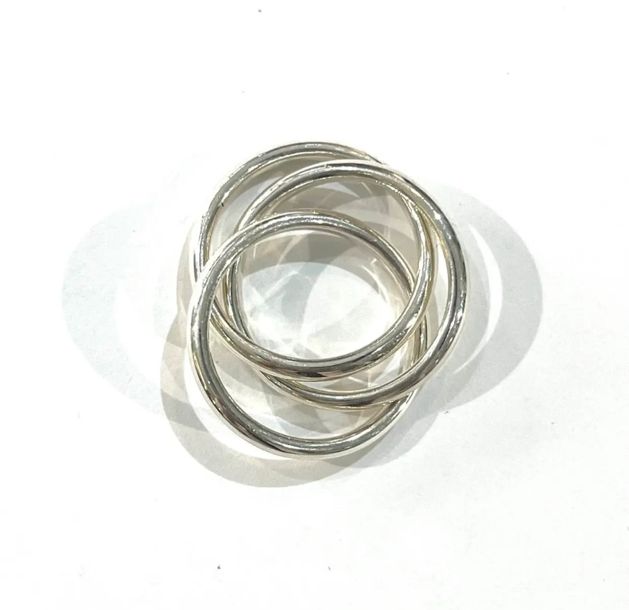 【基本情報】【ブランド】TIFFANY&CO.【商品名】トリニティ3連リング【型番・品番】−【シリアル】−【カラー】シルバー【ライン】−【素材】スターリングシルバー(SV925)【サイズ】13〜14号相当(3連構造のため可動あり)/1本幅 約0.3cm/全体幅 約0.6cm【仕様】3連リング【付属品】−