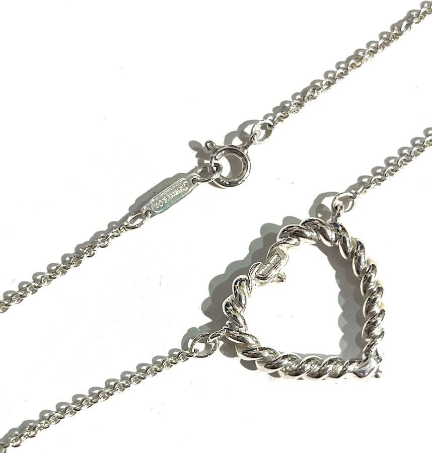 【詳細】• ブランド:TIFFANY&CO.(ティファニー)• モデル:ツイストハート ネックレス• 素材:シルバー925• チェーン全長:約41cm• トップサイズ:約2.2cm × 約2.0cm• 対象:ユニセックスにもおすすめ)•⸻