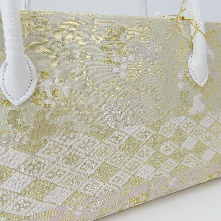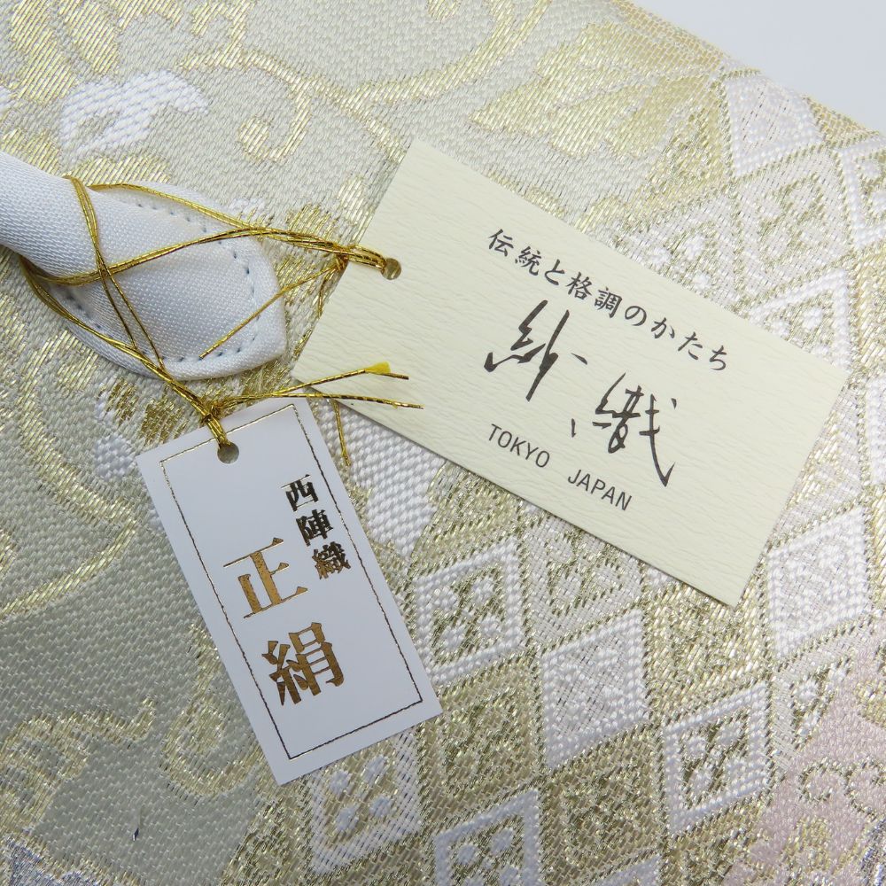 [USED] Unused display item, Rikyu style Japanese bag, made of pure silk (excluding gold and silver threads), polyester, rayon, white, gold, suitable for kimono.