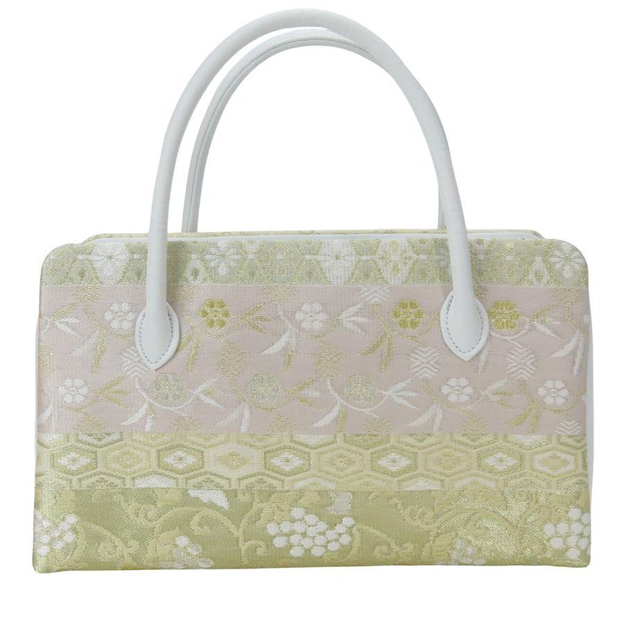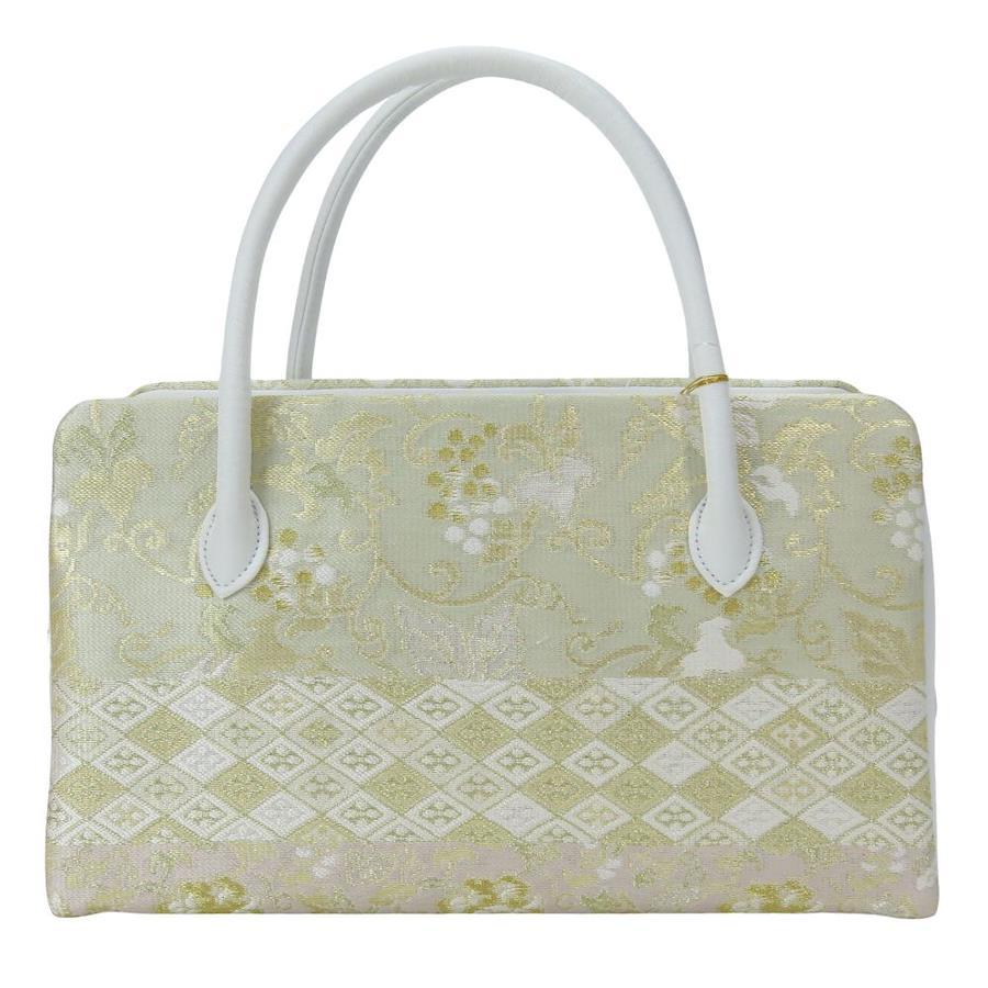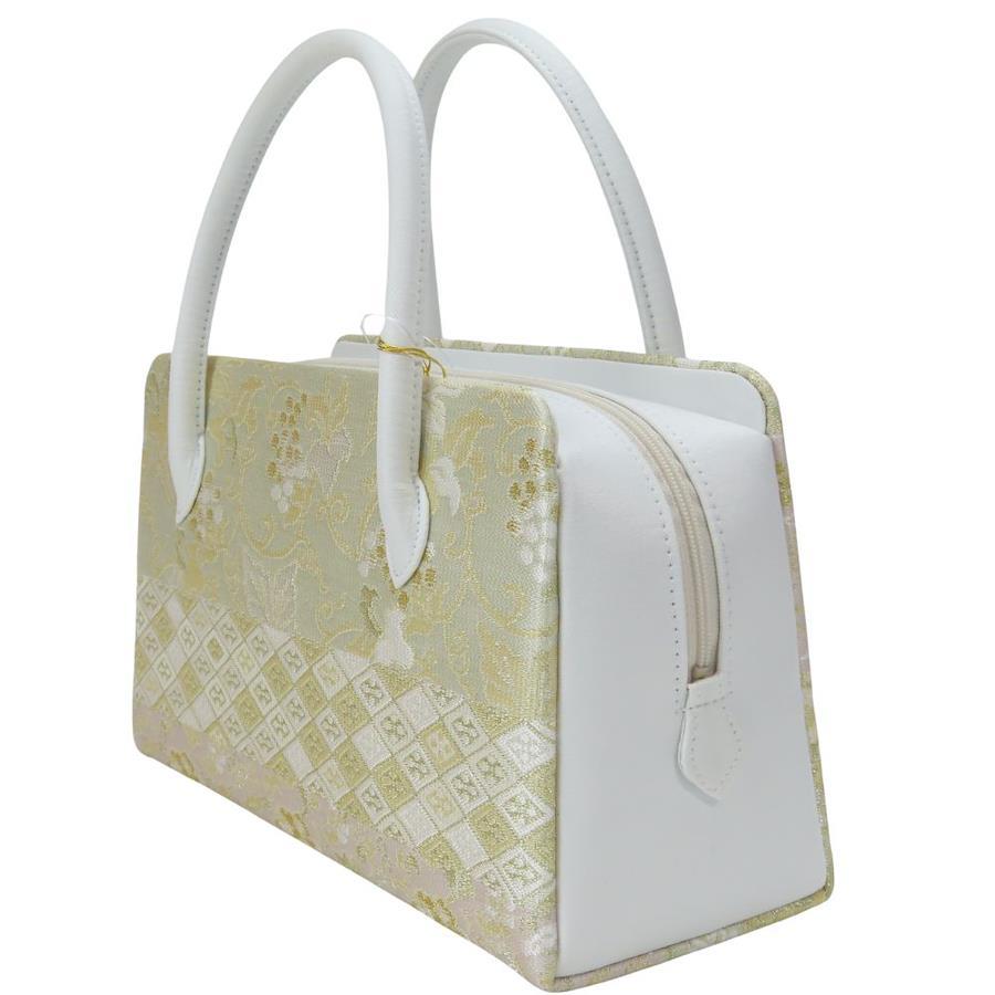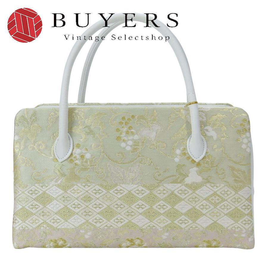 品名【中古】 和装バッグ 利休 正絹(金銀糸除く) ポリエステル レーヨン ホワイト ゴールド ハンドバッグ 沙織 レディース 女性