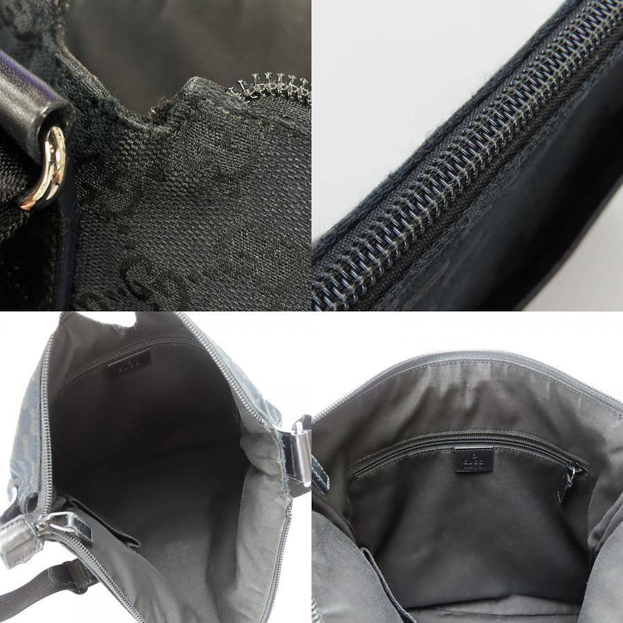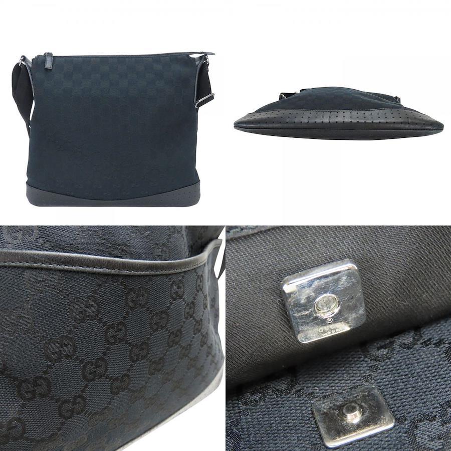品名:【中古】 グッチ ショルダーバッグ 145857 パンチング GGキャンバス レザー ブラック カジュアル 普段使い マチなし メンズ 男性 GUCCI