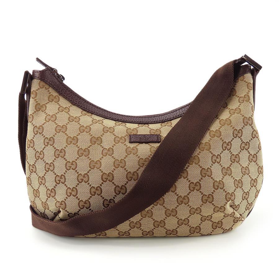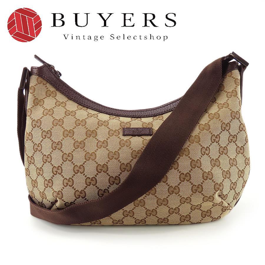 品名:【中古】 グッチ ショルダーバッグ 181092 GGキャンバス レザー ベージュ ブラウン シルバー金具 斜め掛け レディース 女性 GUCCI