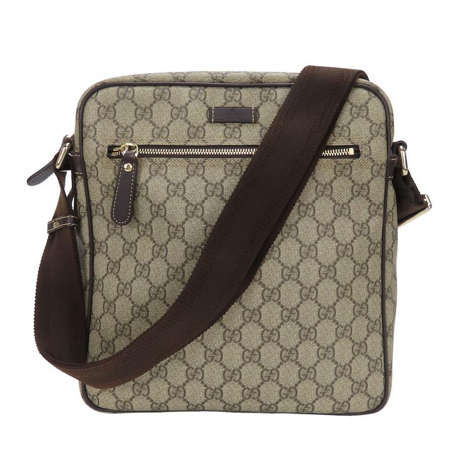 品名:【中古】 グッチ ショルダーバッグ 201448 GGスプリームキャンバス レザー ベージュ ダークブラウン カジュアル 普段使い GUCCI