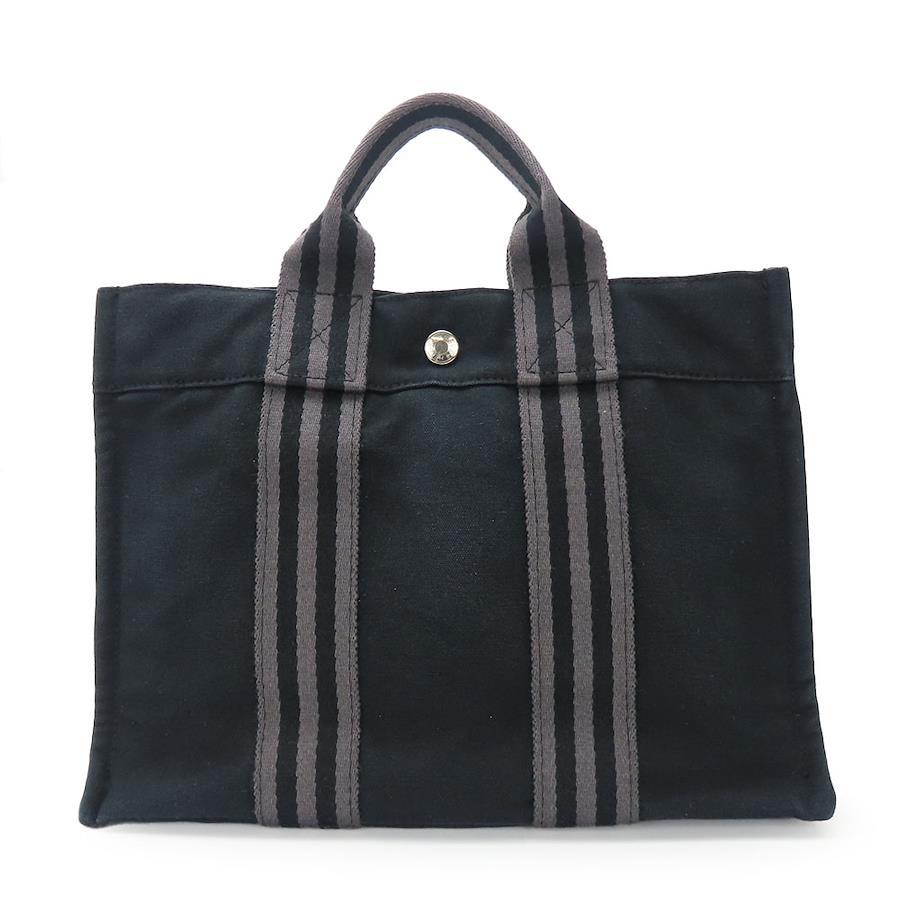 品名:【中古】 エルメス ハンドバッグ フールトゥPM キャンバス ブラック グレー シルバー金具 カジュアル 普段使い HERMES