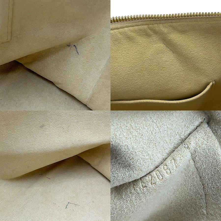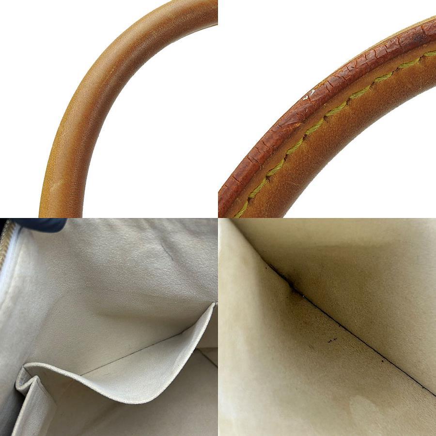 ヌメ革にヤケ・スレ・シミ、角・縁にスレ、開口部に僅かなスレ・汚れ・ヒビ割れ、サイドタグにスレ・黒ずみ・付け根に切れ、ハンドルにスレ・汚れ・線キズ・コバにヒビ割れ、表面に僅かなスレ・汚れ、内側・ポケット内に汚れ・ペン汚れ、金具に小キズ・メッキ剥げ・くすみ、型崩れがございます。