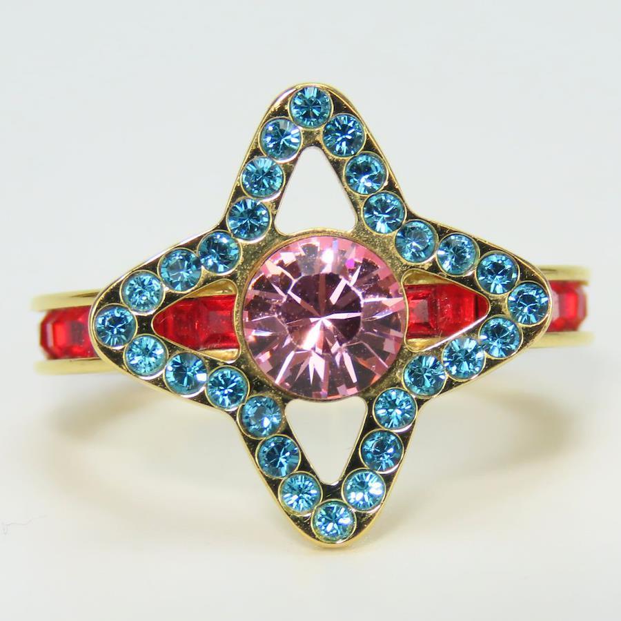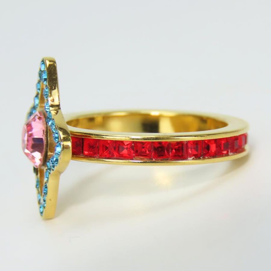 品名:【中古】 ルイ・ヴィトン リング・指輪 バーグアイ キャンディ M66325 Lサイズ メタル ラインストーン ゴールド レッド ピンク ライトブルー カラフル アクセサリー メッキ レディース 女性 LOUIS VUITTON