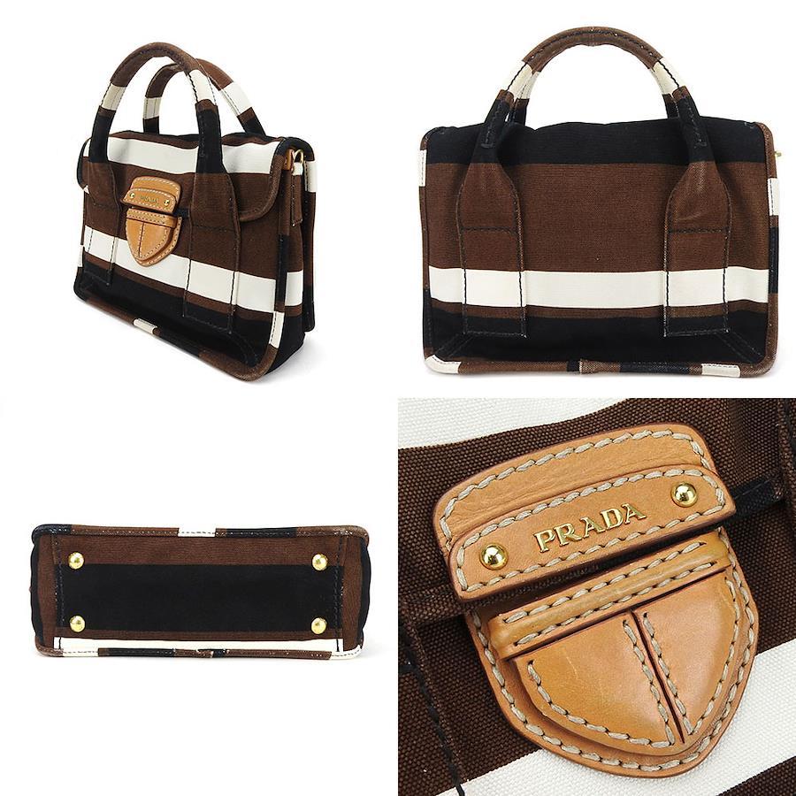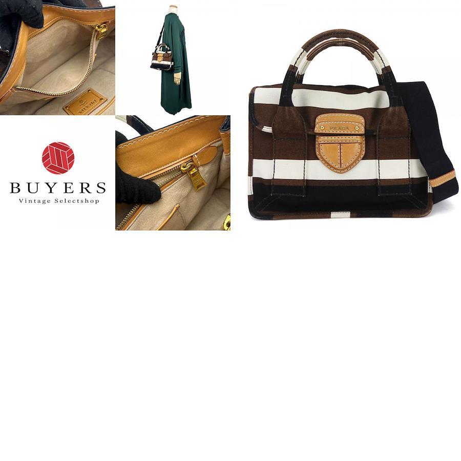 品名:【中古】 プラダ ハンドバッグ BN2119 キャンバス ブラウン - 2WAY ショルダー ボーダー レディース 女性 PRADA