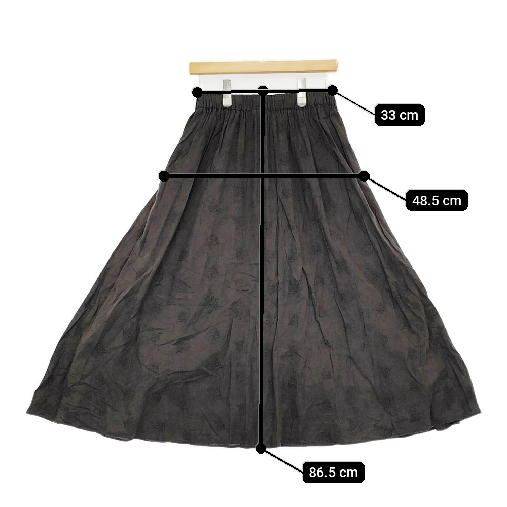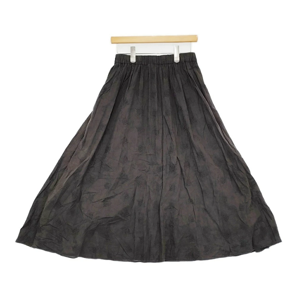 Kagure Cotton Embroidered Indian-Made Gathered Long Skirt, Black, Women's, Kagure [Pre-owned], 5-0805M