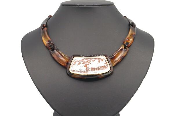 べっ甲ネックレスべっ甲シェルカメオネックレスK18YG中古ペンダントアクセサリー宝石ジュエリーレディース女性Tortoiseshell