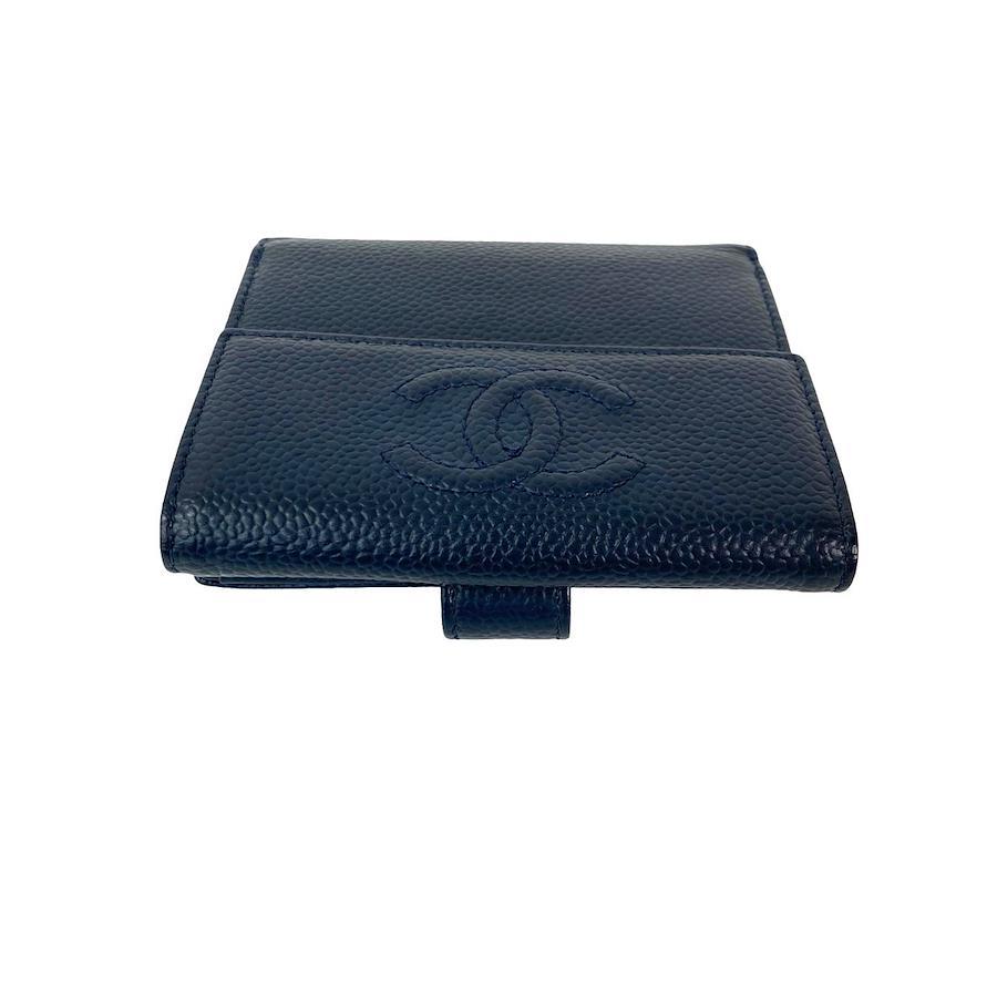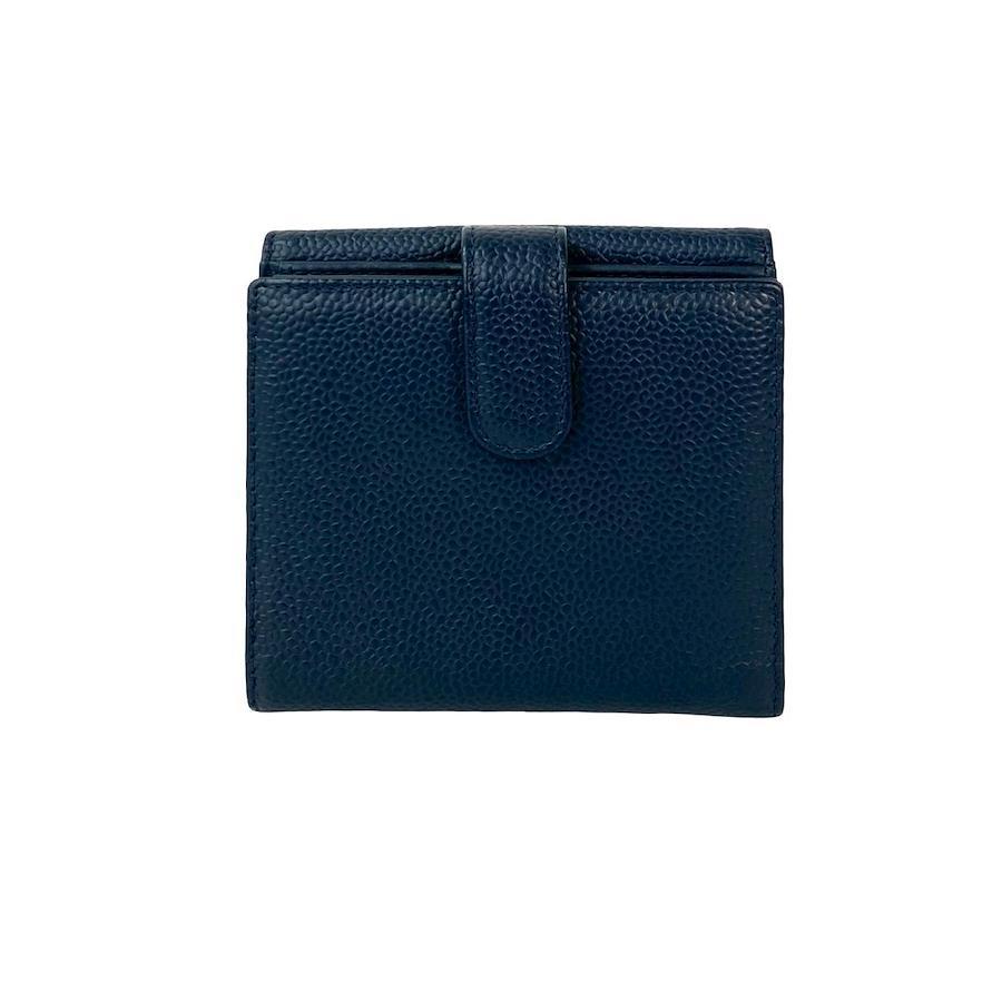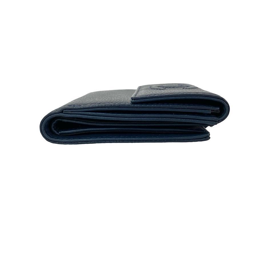 Nearly unused, with card and sticker. 16th series CHANEL Coco caviar leather bi-fold mini wallet in navy. 97793