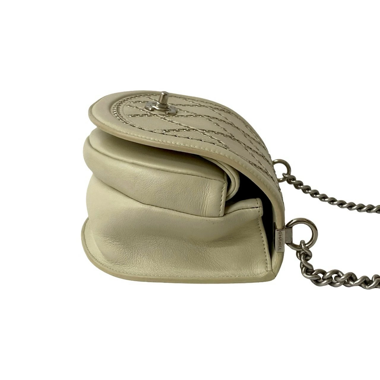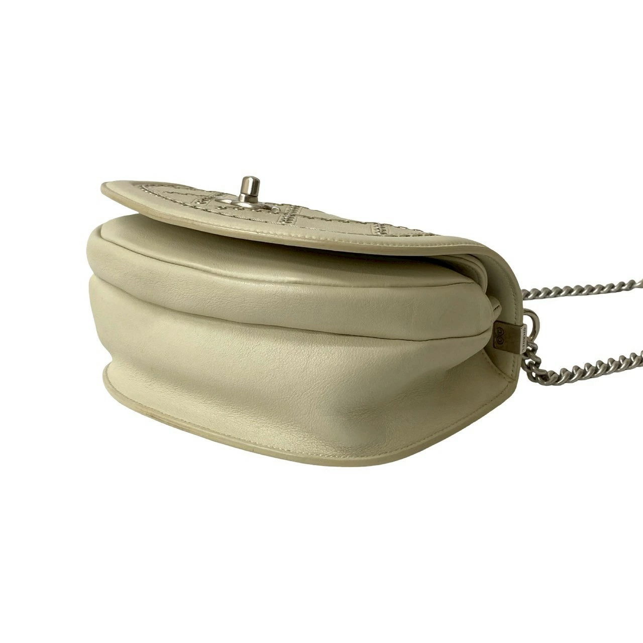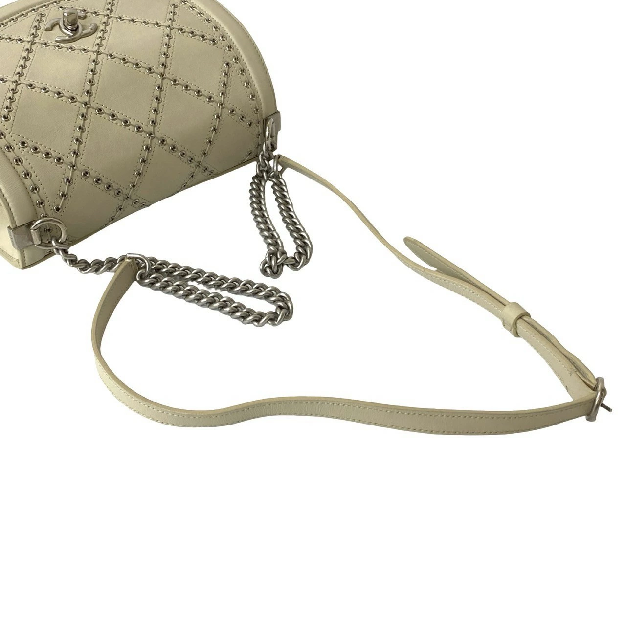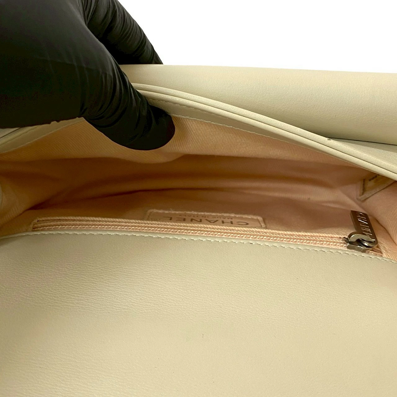 Earn double points! Pre-owned, nearly new, with sticker, #25 series CHANEL Coco Mark, perforated stitching, genuine leather, chain shoulder bag, ivory, 25056.