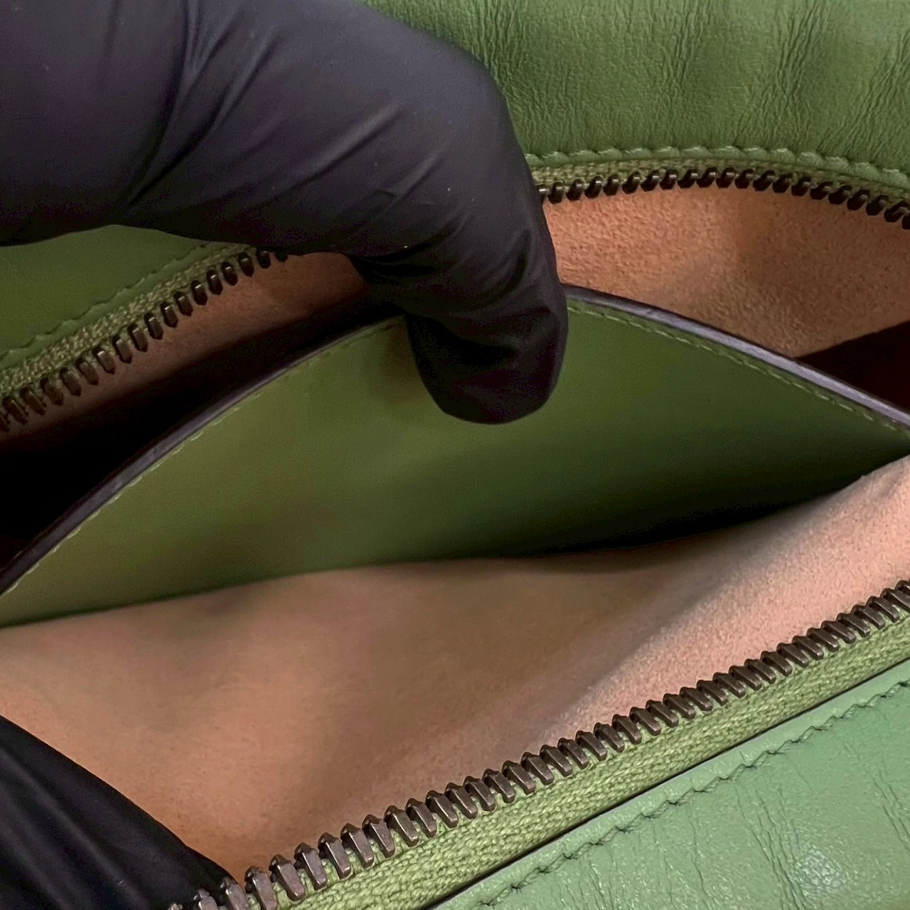 [Double Points] Rare, Almost Unused GUCCI GG Marmont Quilted Leather Shoulder Bag with Chain, Light Green, 61489 [Pre-owned]
