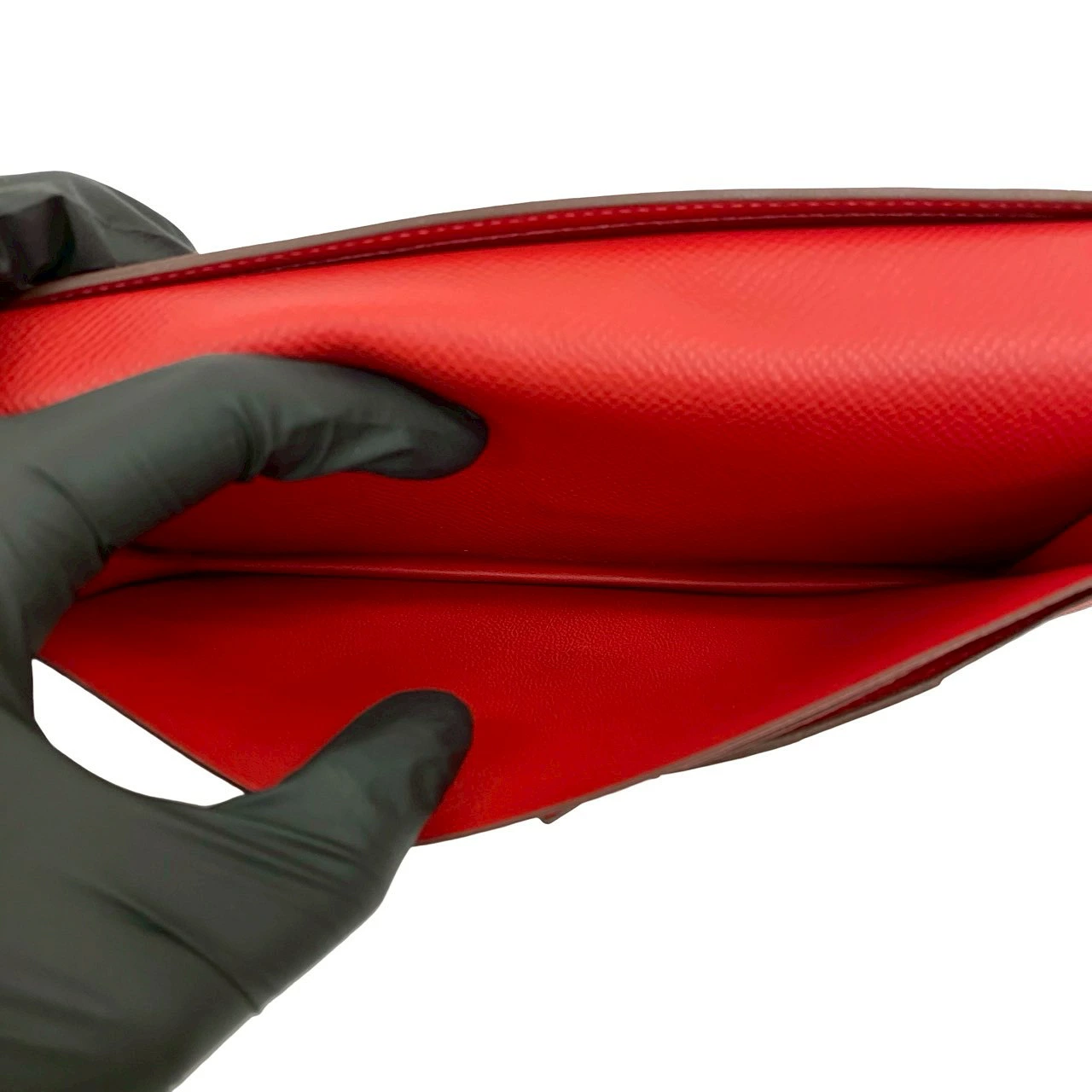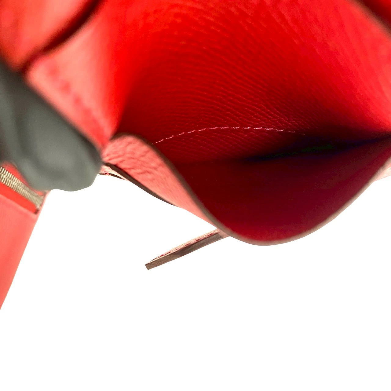 Nearly unused, boxed, with a "Z" stamp. HERMES Bearn Soufflet leather bifold long wallet in genuine Epsom leather. Red, m866b. [Pre-owned]