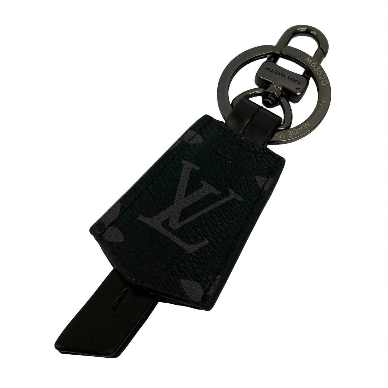 Nearly unused, box and bag included. LOUIS VUITTON Porte-Clés Cloche Clés Monogram Eclipse Leather Keychain in Black, 41640. [Pre-owned]