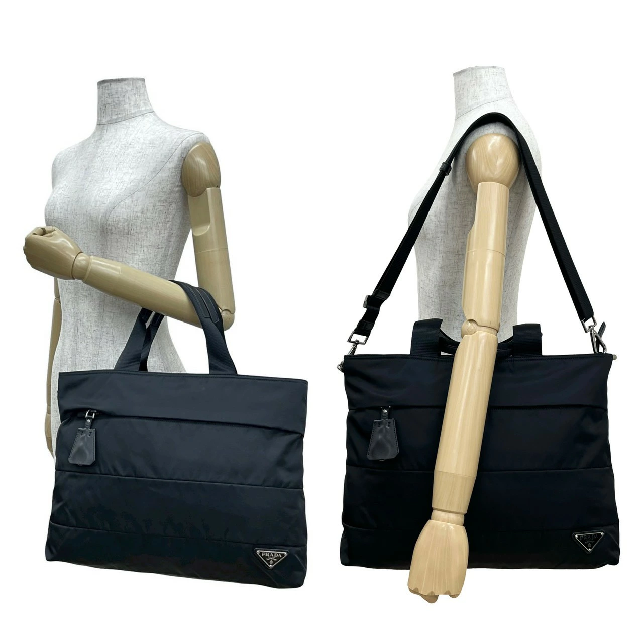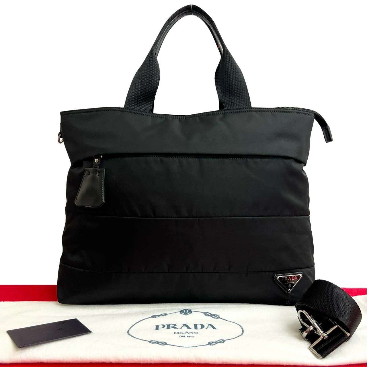 Nearly unused PRADA Prada bag with triangle logo and metal hardware. Nylon and leather 2-way handbag, shoulder bag, and business bag in black. 78075. [Pre-owned]