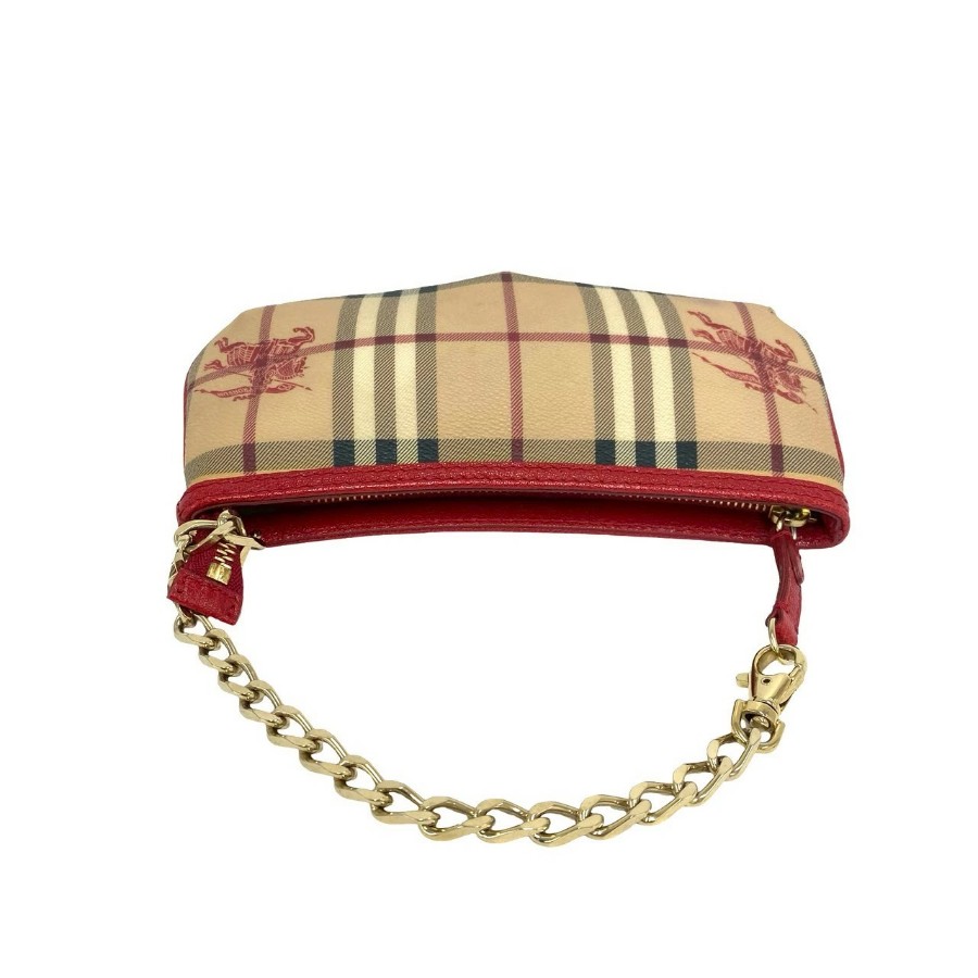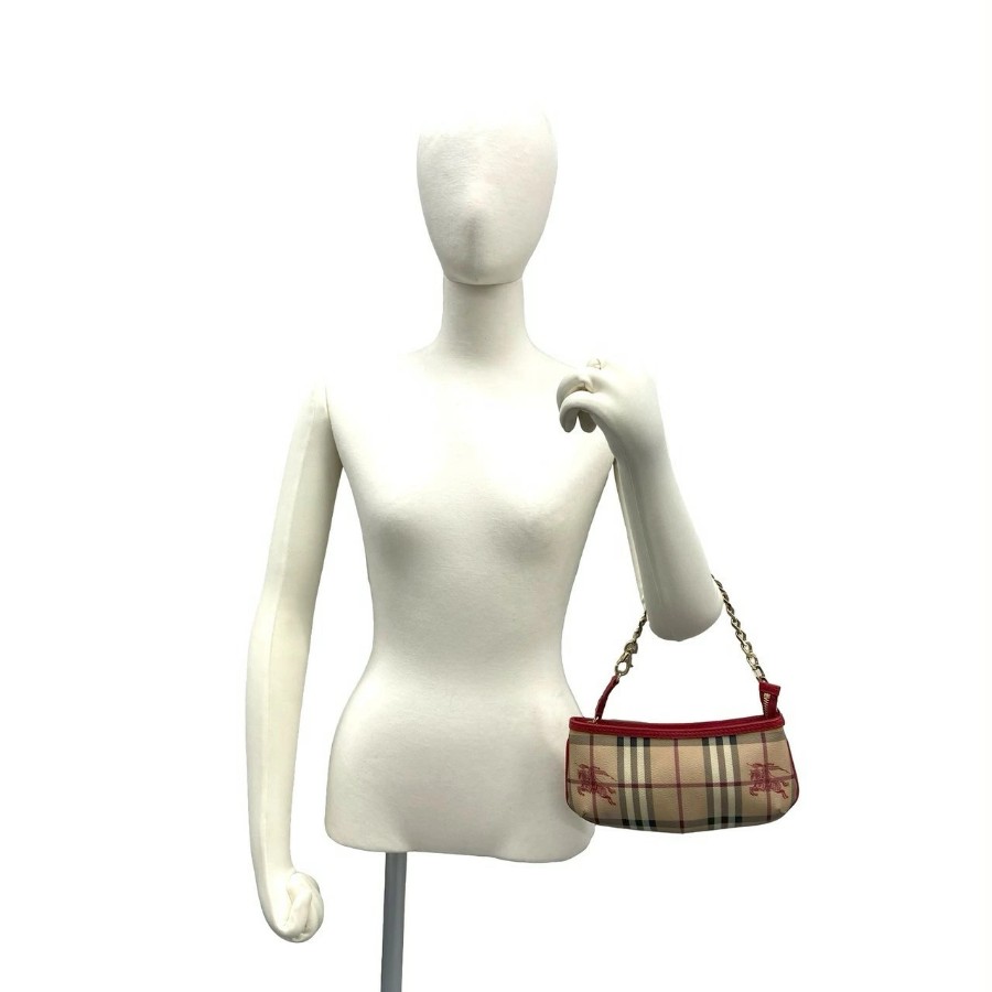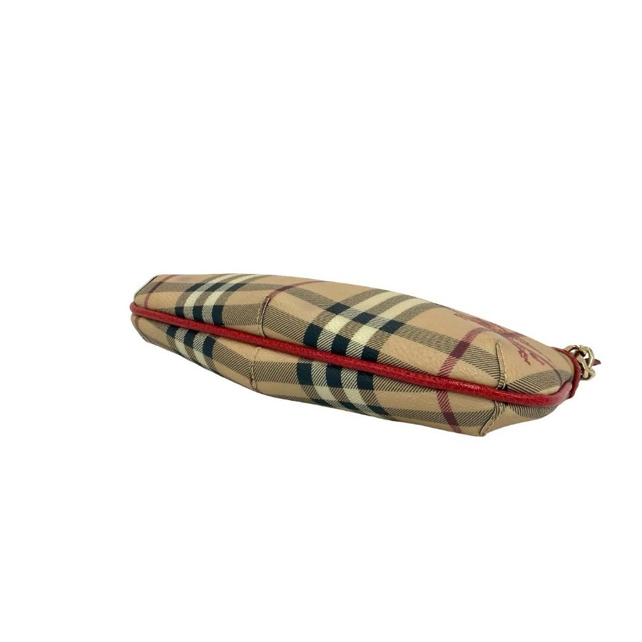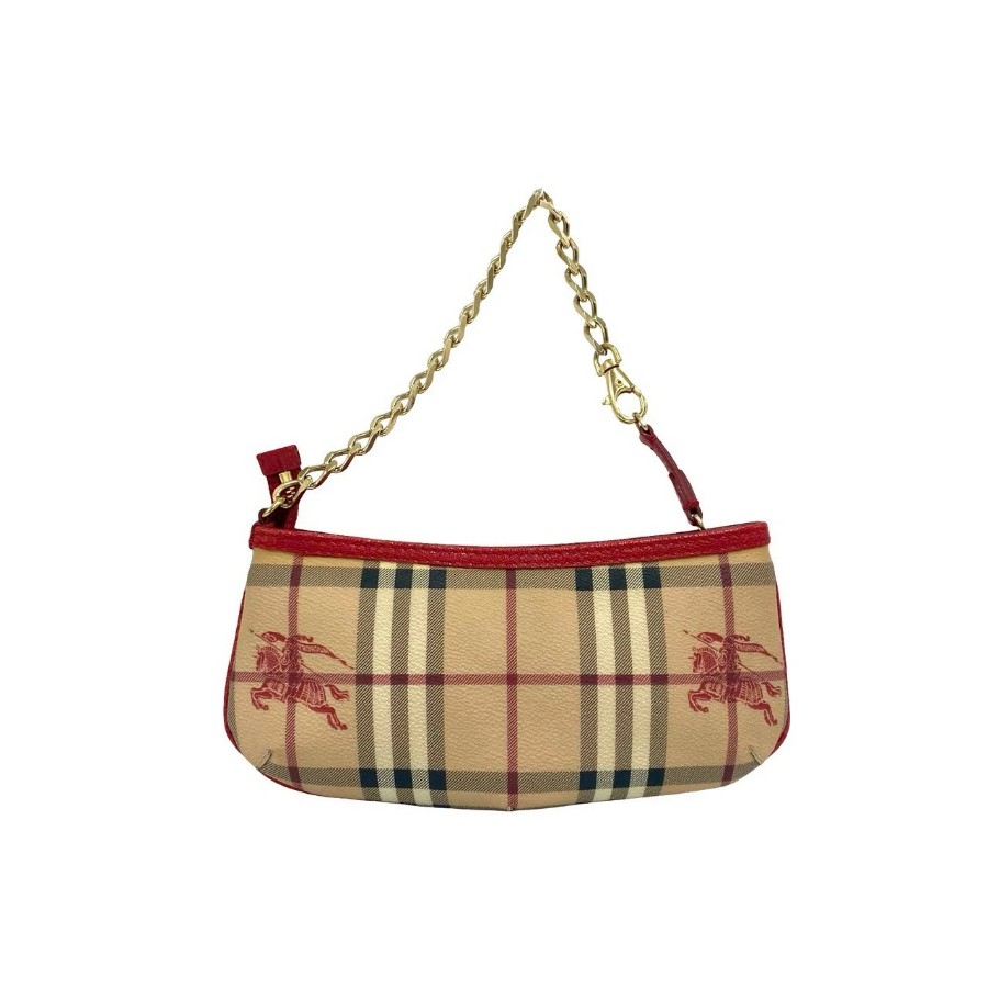 Almost New BURBERRY Nova Check Shadow Horse Pattern Leather Chain Handbag Pouch Beige Red 29956 [Pre-owned]