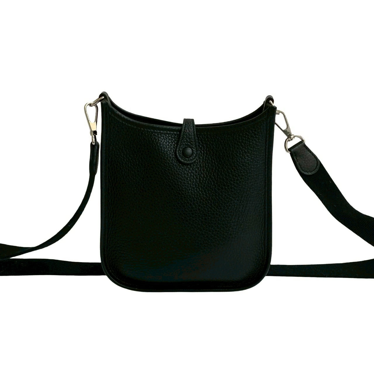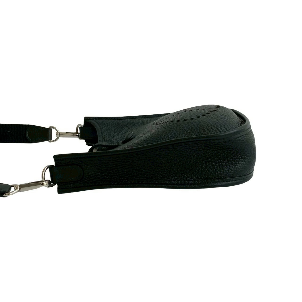 [Double Points] Pre-owned, nearly new, D-stamped HERMES Evelyn TPM Taurillon Clemence leather mini shoulder bag/pouch in black (23283).