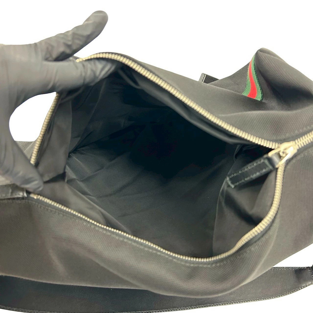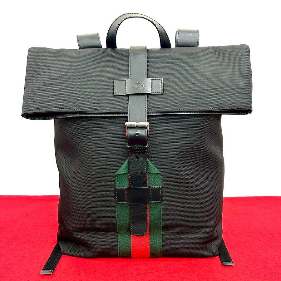 [Double Points] Nearly Unused GUCCI Webbing Line Leather Canvas Backpack/Daypack in Black (Product Code: 442-7) [Pre-owned]