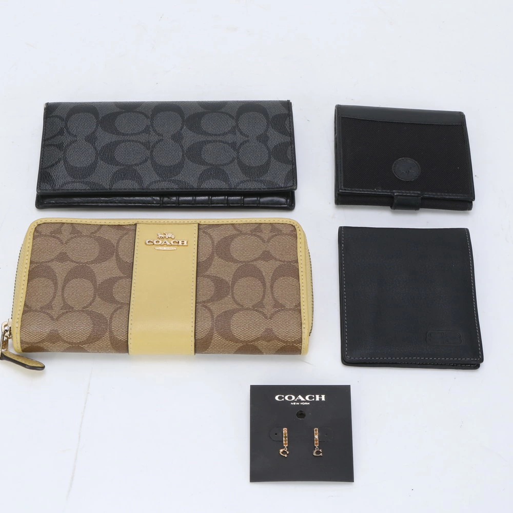 5-Piece Set: Balenciaga, Coach Signature Leather Long Wallet, Bifold Compact Wallet, and Earrings (Women's) ENE BJ12-8