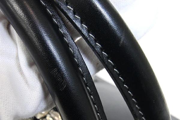 | 状態 | 外側:型崩れ・保管時の折りたたみクセあり。所々小キズ、スレあり。角や本体パイピングにスレによる色褪せあり。 内側:スレ、汚れあり。 金具:小キズ、スレあり。飾りメタルに薄っすらとクスミ変色あり。 |