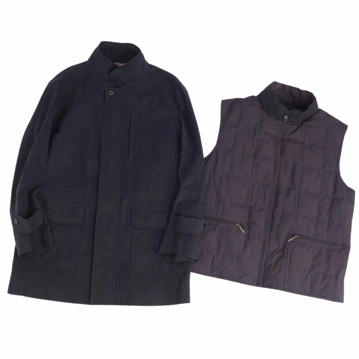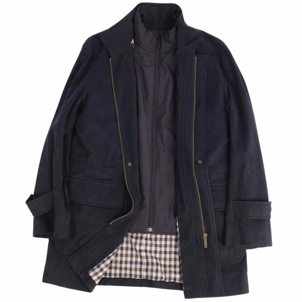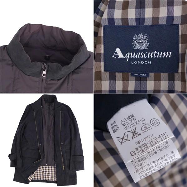 Aquascutum LONDON Coat 3way Down Vest Liner Checked Lining Faux Leather Outerwear Men's M Black [Used]