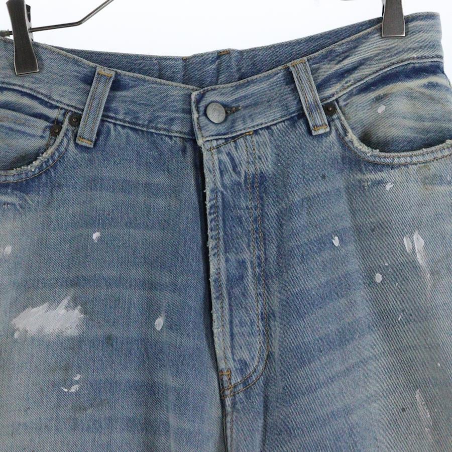 [モデル]25AW 2023 U TRAFALGAR トラファルガー ダメージ加工 ペイント ワイド デニムパンツ インディゴブルー