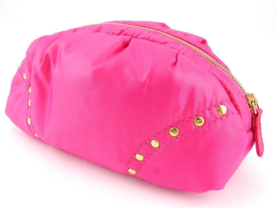 Pre-owned ANNA SUI studded pouch with apple charm in pink, gold, and white. Women's.