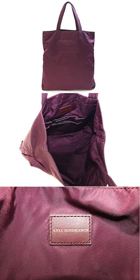 アニヤハインドマーチトートバッグアイズ5050925100977ボルドーナイロンレザー中古縦型トートハンドバッグ軽量レディースANYAHINDMARCH