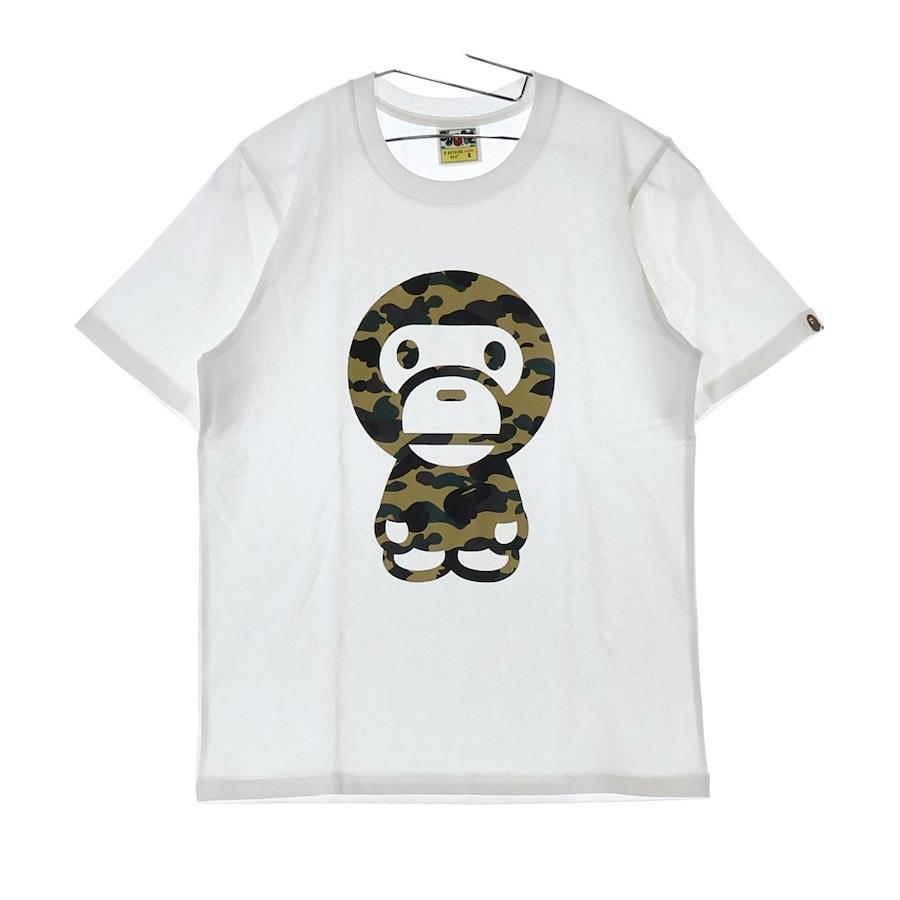 A BATHING APE 1ST CAMO BIG BABY MILO TEE Crew Neck Short Sleeve T-Shirt, Women's, White/Camouflage, Size S (002TEL202003L)