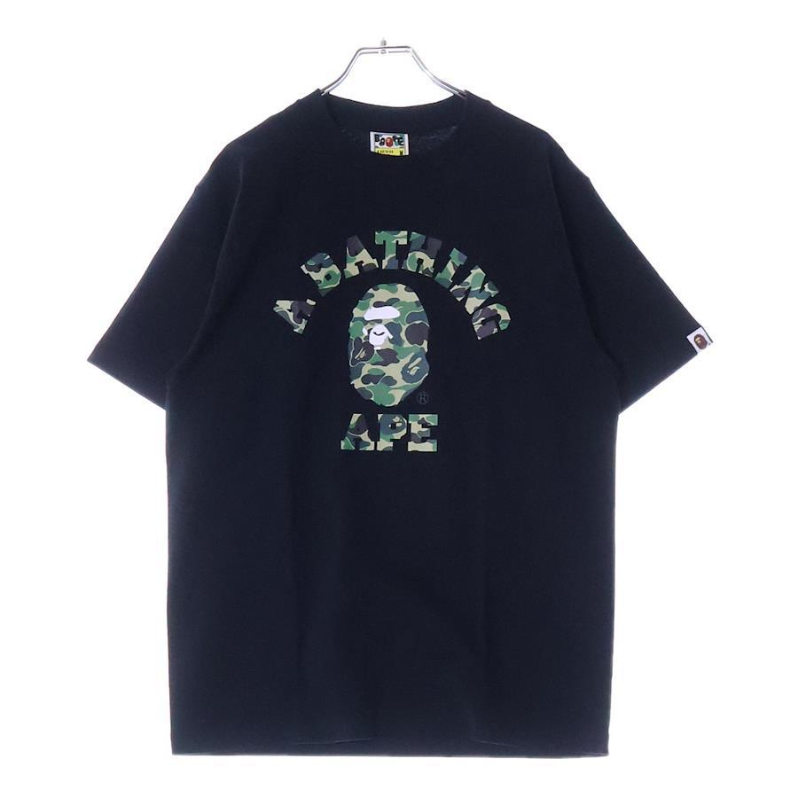 [モデル]ABC CAMO COLLEGE TEE フロントプリント クルーネック半袖Tシャツカットソー ブラック/グリーン 001TEL801005M