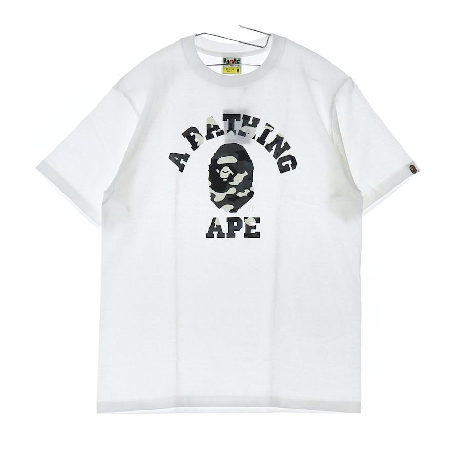 A Bathing Ape CITY CAMO COLLEGE TEE Crew Neck Short Sleeve T-Shirt, White/Gray, Size M (001TEL801026M)