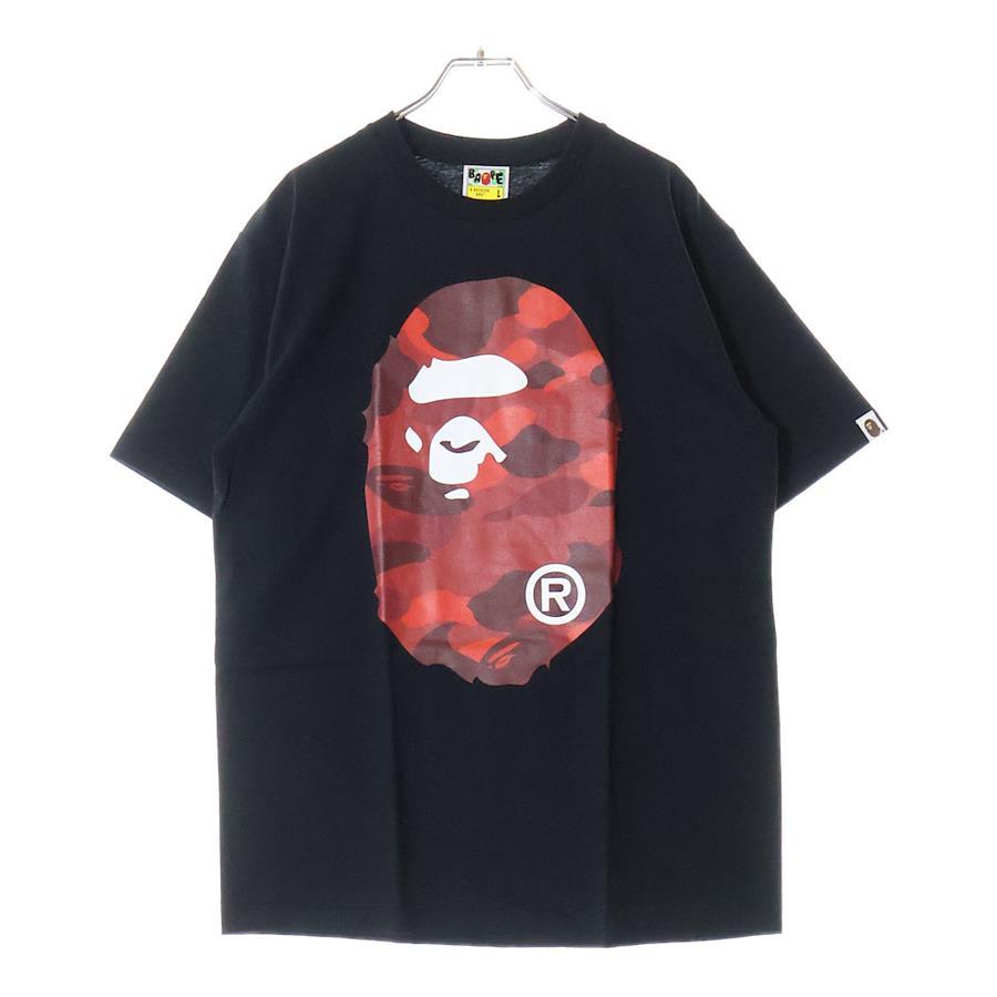 [モデル]COLOR CAMO BY BATHING APE TEE クルーネック半袖Tシャツカットソー ブラック/レッド 001TEL801017M