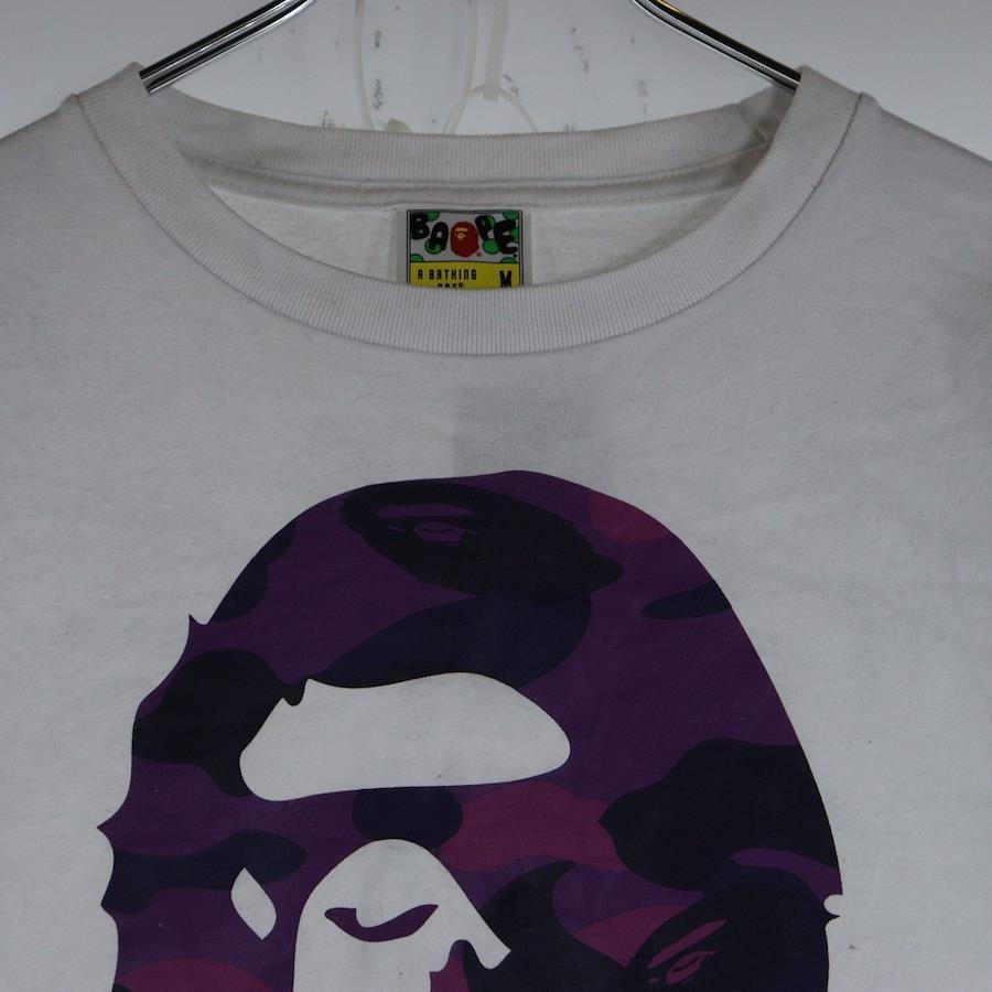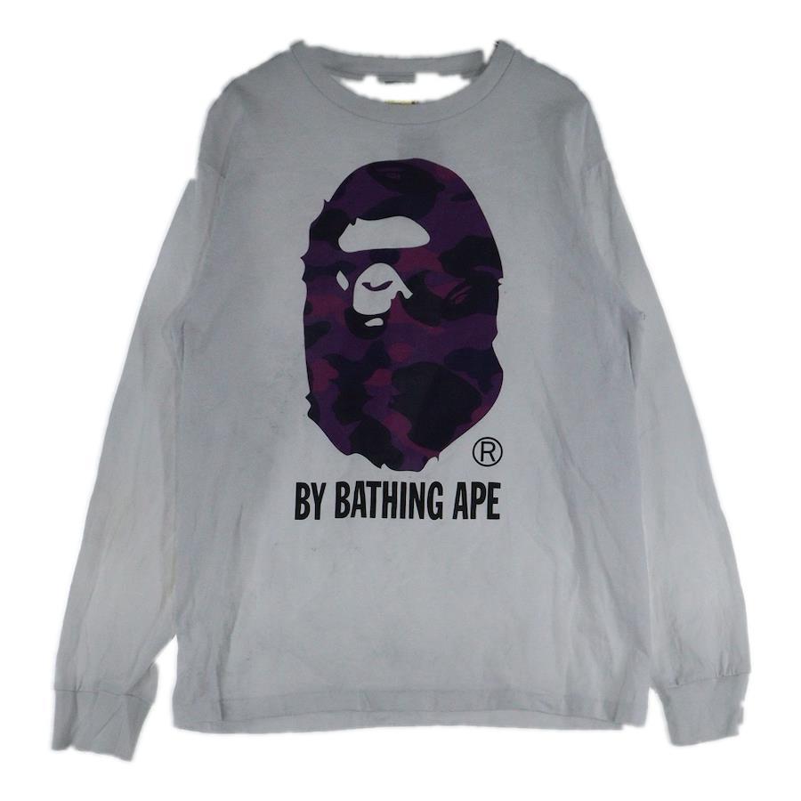 [モデル]COLOR CAMO BY BATINGAPE TEE フロントプリントクルーネック長袖Tシャツカットソー ホワイト/パープル 001LTH751004M