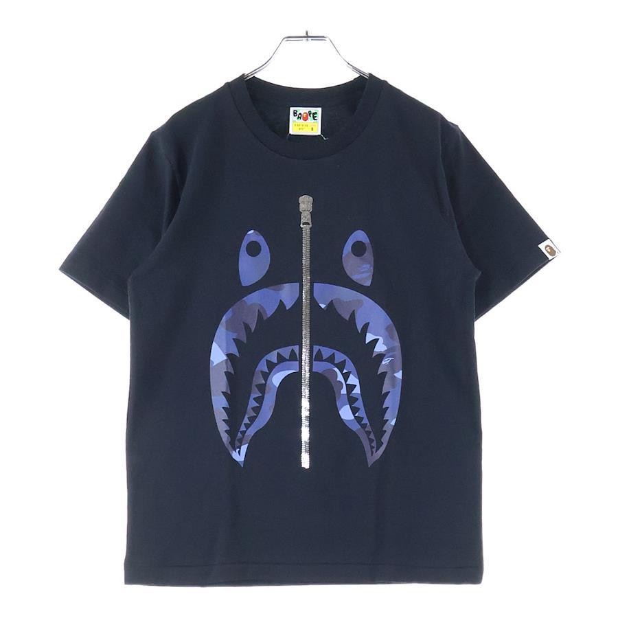 [モデル]COLOR CAMO SHARK TEE カラーカモ シャーク クルーネック半袖Tシャツカットソー レディース ブラック/ネイビー 001TEL802062L