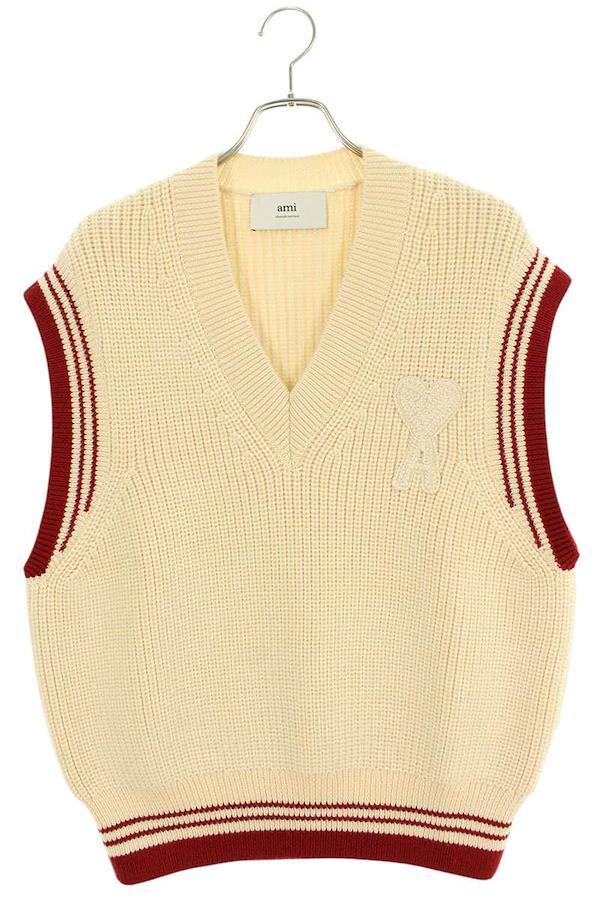 AMI Alexandre Mattiussi <br>Size: L 25SS UKS768KN0068 136 Heart A Embroidered V-Neck Knit Vest (Off White) [413052] [SB01] [Men's] [Like New] bb20#rinkan*N