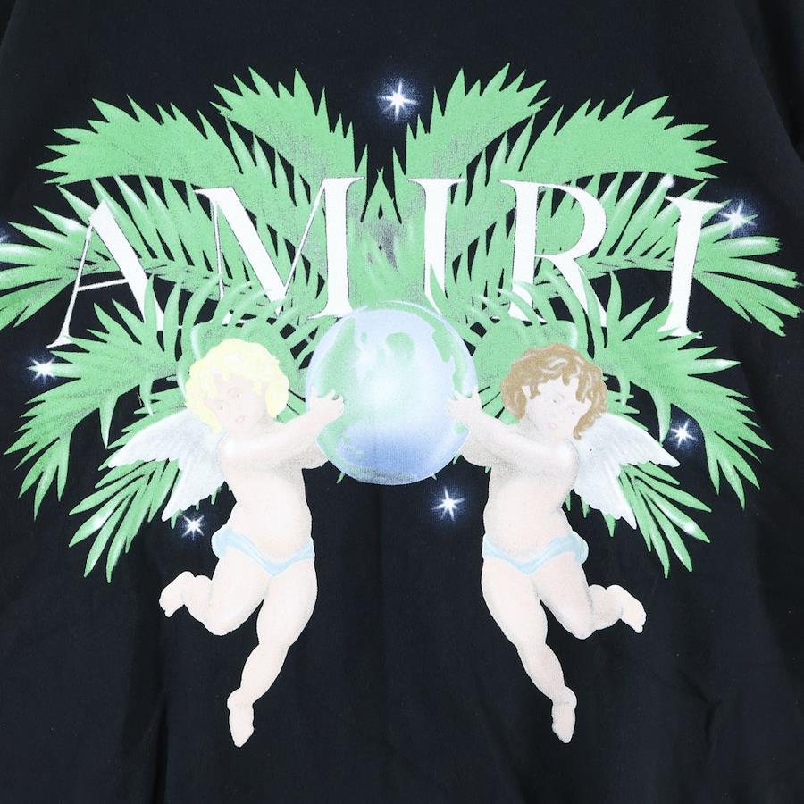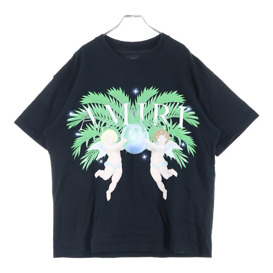 [モデル]エンジェルプリント 半袖Tシャツ カットソー ブラック