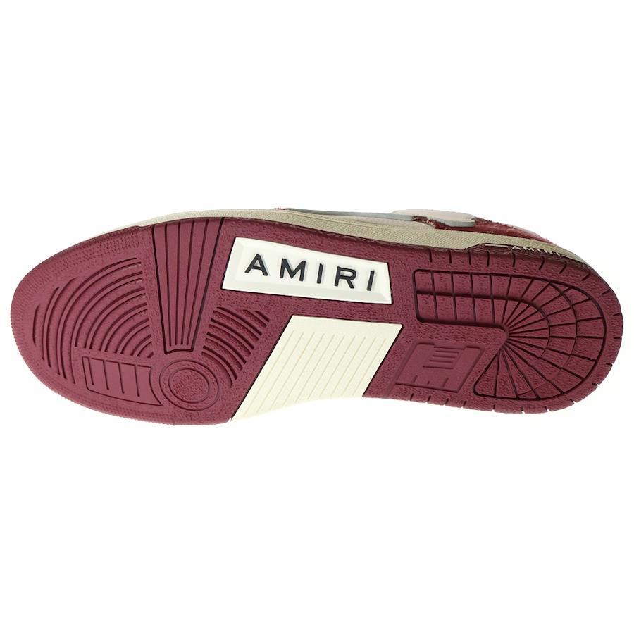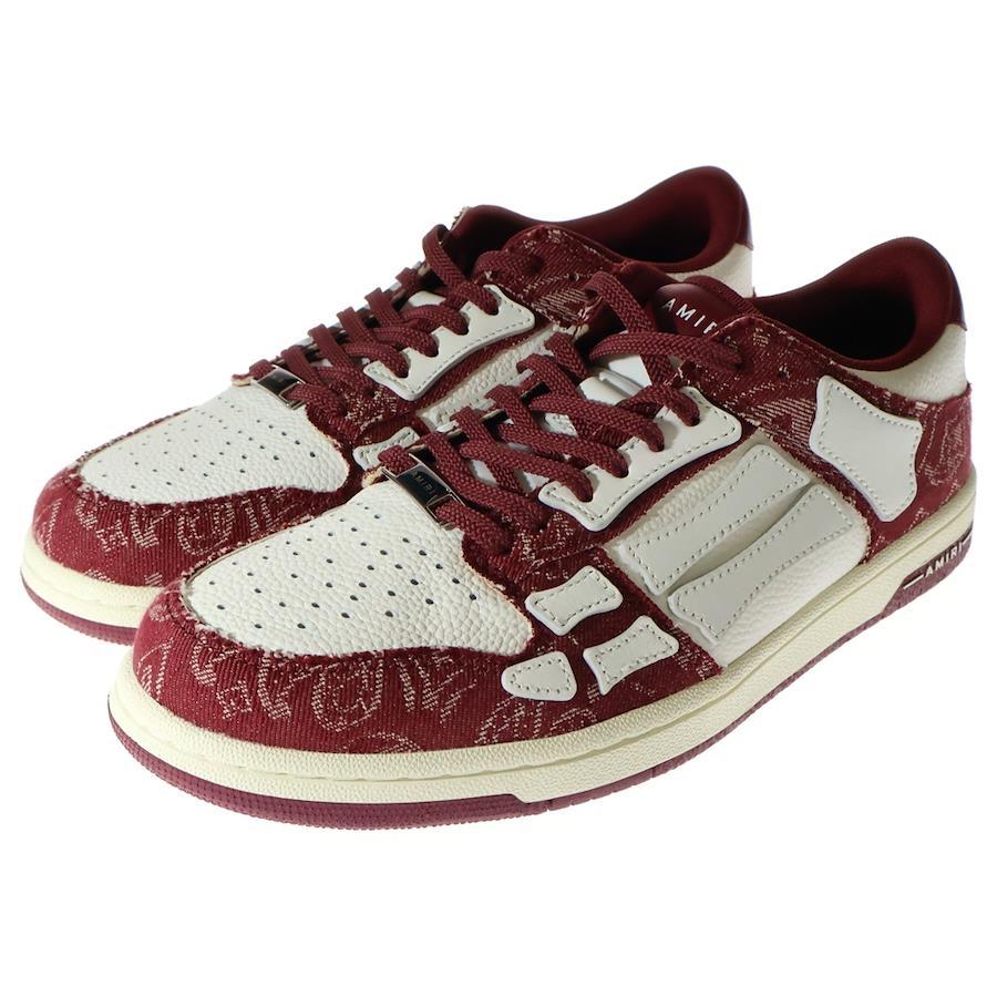 Amiri Bandana Denim Skel Top, a low-top sneaker featuring a bandana denim skull design, burgundy, size 27.0cm.
