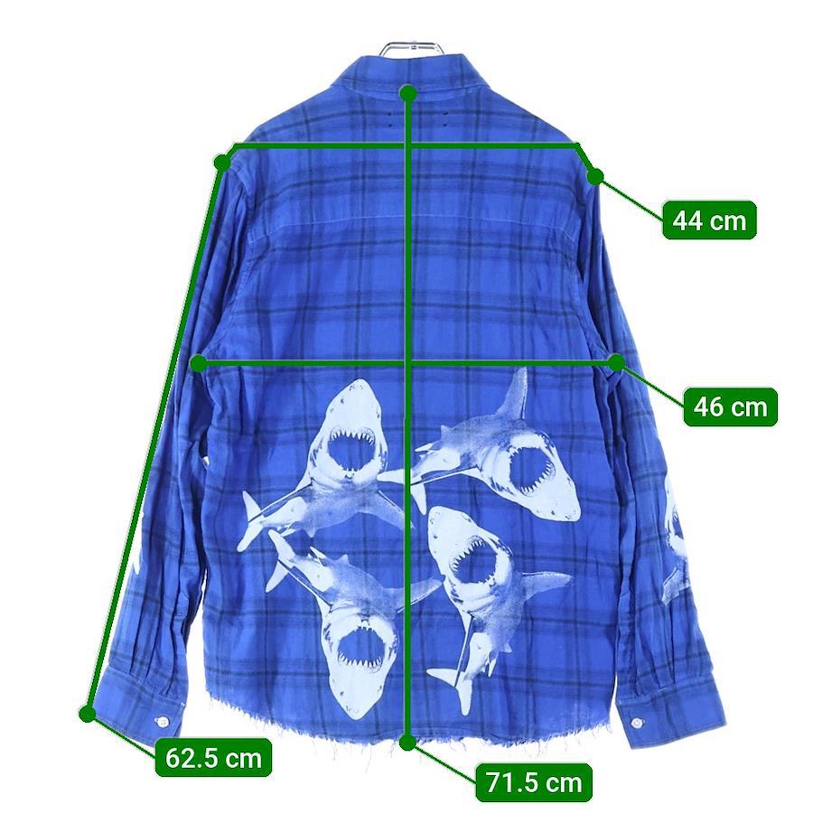 [モデル]Shark Paint Check Shirt シャークペイント 長袖チェックシャツ ネルシャツ ブルー MWLSB-SKF